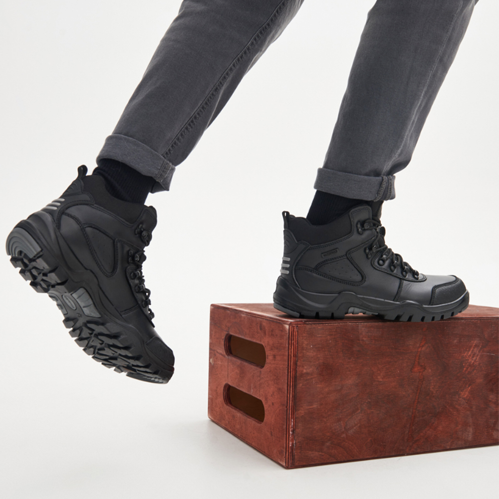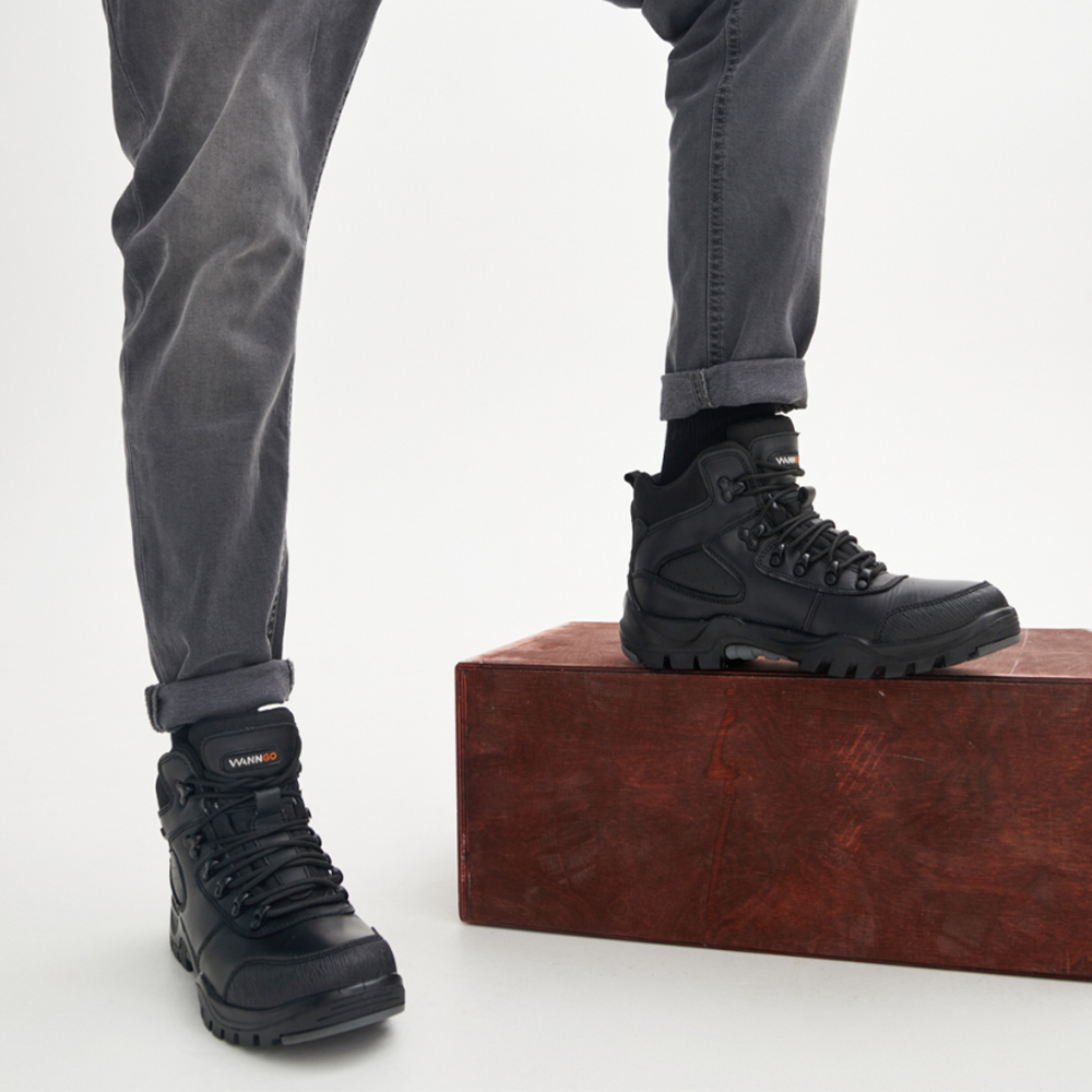 Мужские ботинки WANNGO из натуральной кожи предназначены для активного отдыха и повседневных прогулок по городу. В конструкции верха предусмотрен "глухой" клапан, обеспечивающий защиту стопы в обуви от попадания пыли и пр. Водонепроницаемая и «дышащая» подкладка с мембраной WG-TEX обеспечивает идеальный комфорт даже в сырую погоду. Вкладная стелька Smart Insole комфортно поддерживает стопу и обладает амортизационными свойствами. Для защиты от механических повреждений носочная части ботинка имеет накладку из полимерного материала ТПУ. Двухслойная подошва с промежуточным слоем из пористого полиуретана облегчает вес ботинка, сохраняет тепло и снимает нагрузку во время ходьбы. Литьевой метод крепления верха к подошве гарантирует водонепроницаемое соединение. Нижний ходовой слой выполнен из резины с глубоким протектором создает надежное сцепление с грунтом и препятствует скольжению на скользкой поверхности. Рекомендуемый температурный режим: от 5 до -10 градусов.