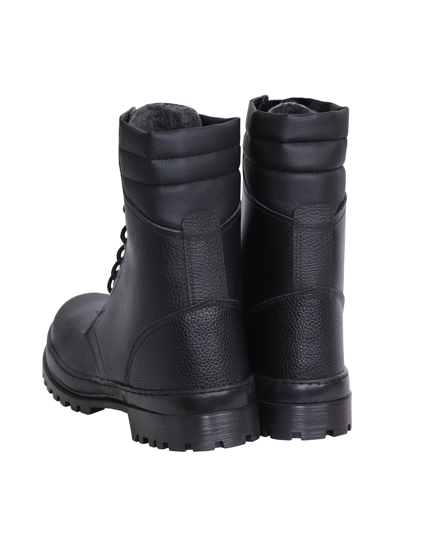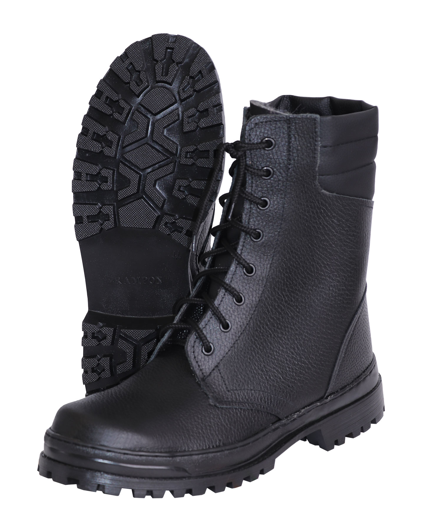 Ботинки хромовые с завышенными берцами, увеличенным мягким кантом и глухим клапаном, усиленным подноском и жестким задником из термопластического материала.