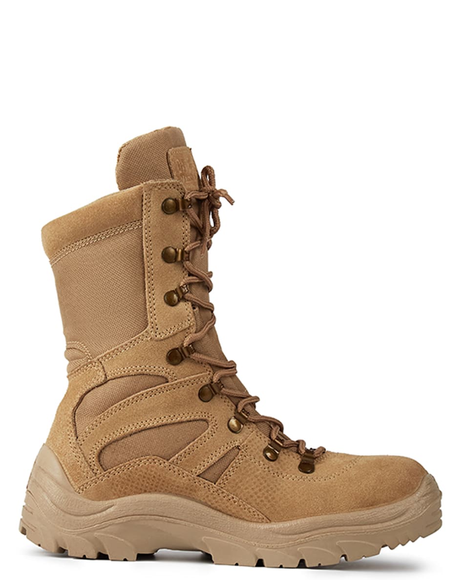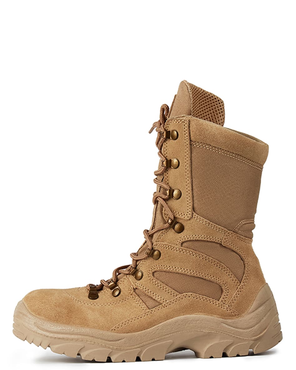 Ботинки с высокими берцами, облегченные. Данная модель создана для активного отдыха, силовых и охранных структур, любителей стиля милитари. Ботинки обладают характеристиками армейской обуви и удобством трекинговых кроссовок. Изготовлены из замши со вставками из особопрочной ткани типа кордура. Подкладка из современной многослойной синтетической влагопоглощающей ткани. Легкая, износоустойчивая подошва из вспененного полиуретана и вкладные стельки из "EVA" добавляют комфорта благодаря демпфирующим свойствам. Конструкция и материалы этой модели обеспечивают потребителю продолжительный срок комфортной эксплуатации. Данная модель адаптирована для применения в военно-патриотических организациях. Смотрите также статью про берцы