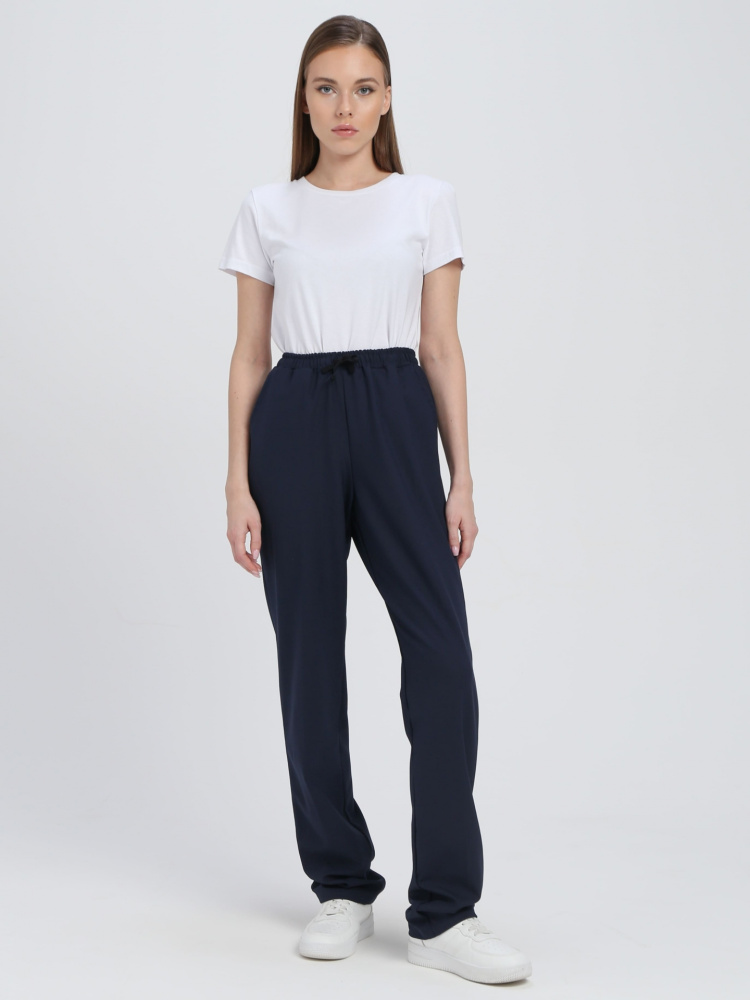 Брюки женские чуть зауженные к низу из смесовой гладкокрашеной ткани.