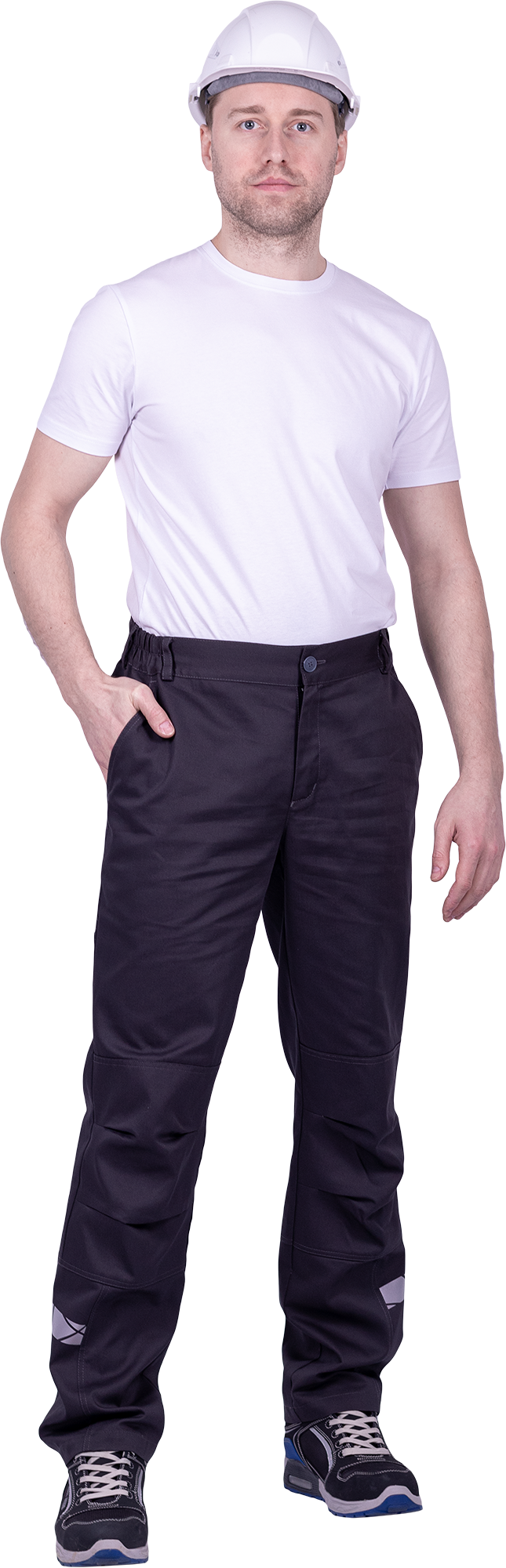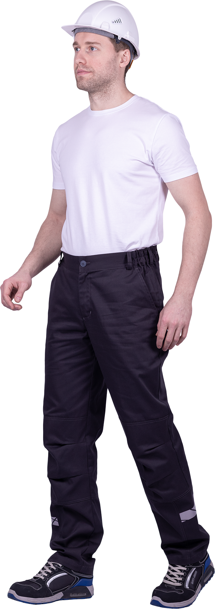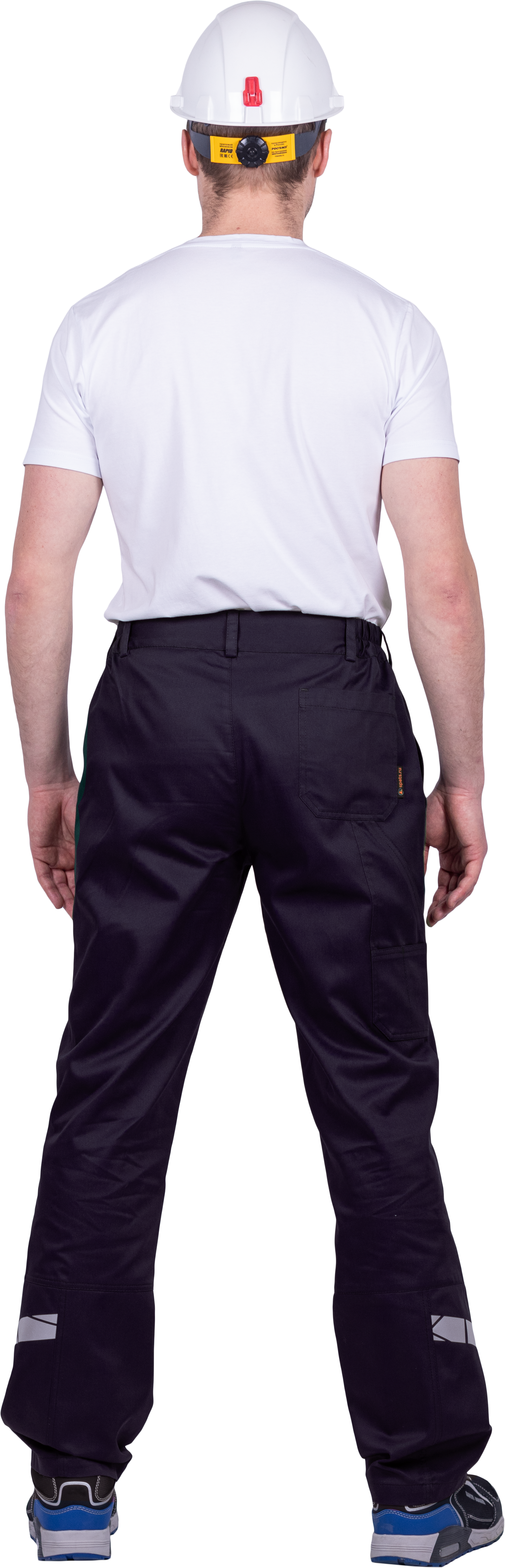• горизонтальная термоклеевая световозвращающая полоса шириной 30 мм располагается по низу брюк в области боковых швов.