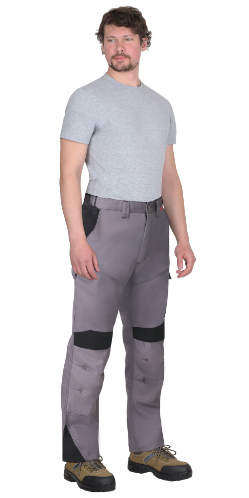 Брюки прямые с застёжкой спереди - гульфик с молнией, с отрезным поясом, с карманами спереди, сзади и на боковых швах, с объёмными наколенниками из плотной, полиэфирной, непромокаемой ткани с верхним входом для амортизационного вкладыша.