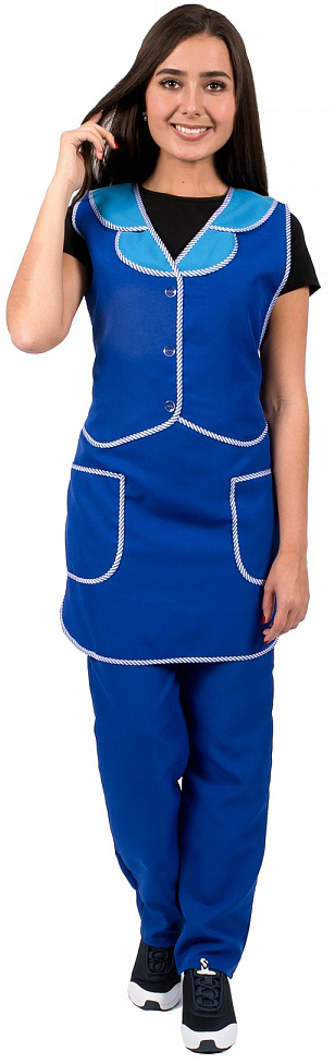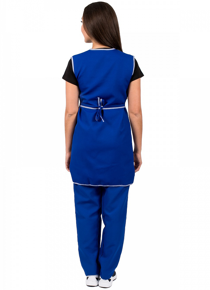 - объем фартука регулируется завязками-поясами, все срезы фартука обработаны кантом из капроновой ткани