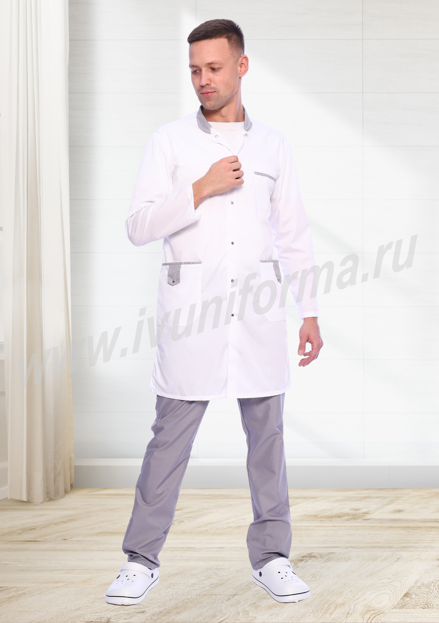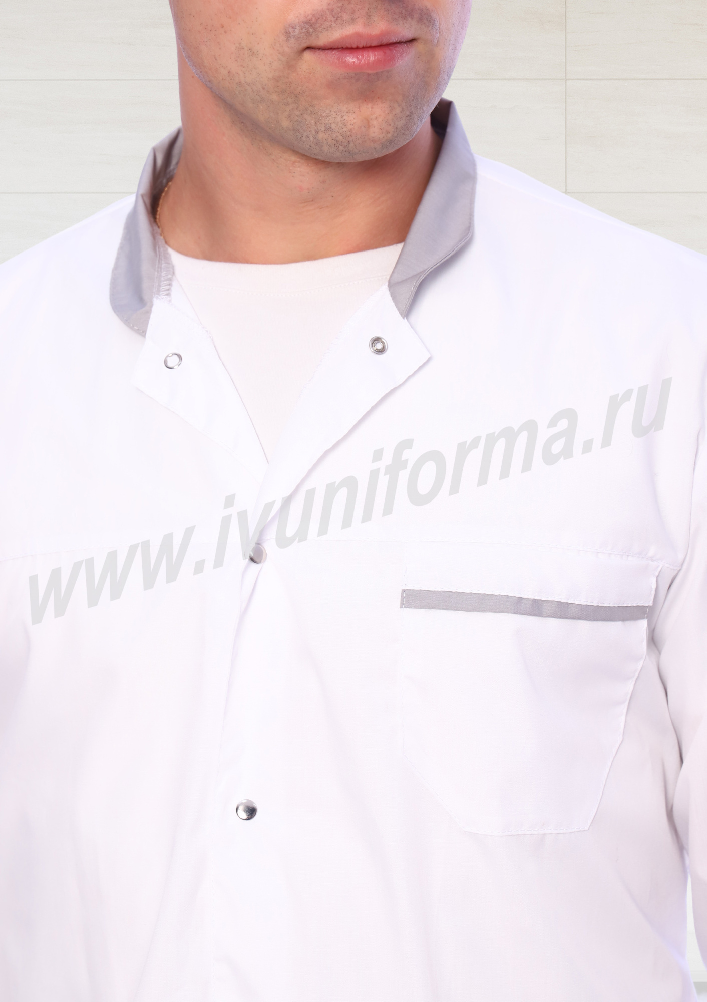 Халат медицинский мужской "Флойд" белый с серым
