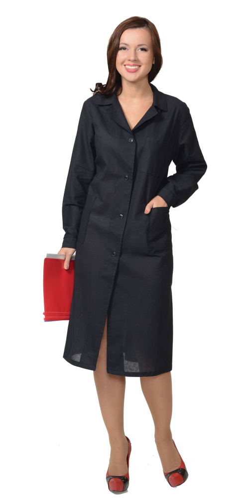 Халат рабочий женский №201 черные, ткань Бязь (ЧЗ) (104-108/194-200)