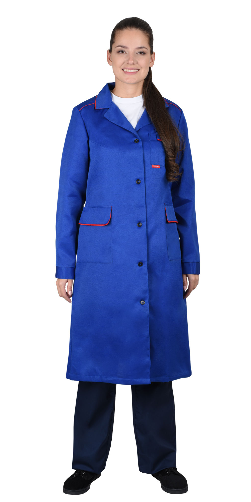Халат "ТЕХНИК" женский васильковый с красным (ЧЗ) (104-108/170-176)