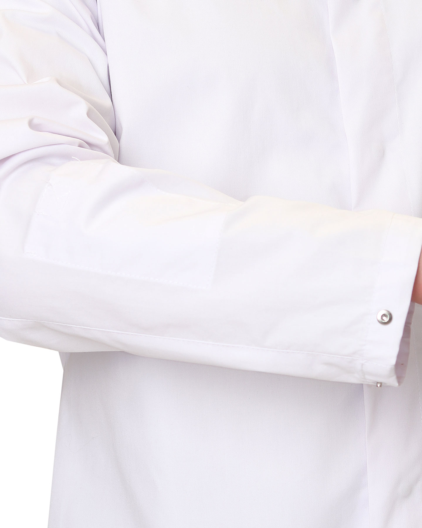 Халат для пищевого производства отвечает требованиям НАССР (ХАССП). Гигиеническая безопасность костюма достигается за счет внутренних карманов и скрытых застежек.