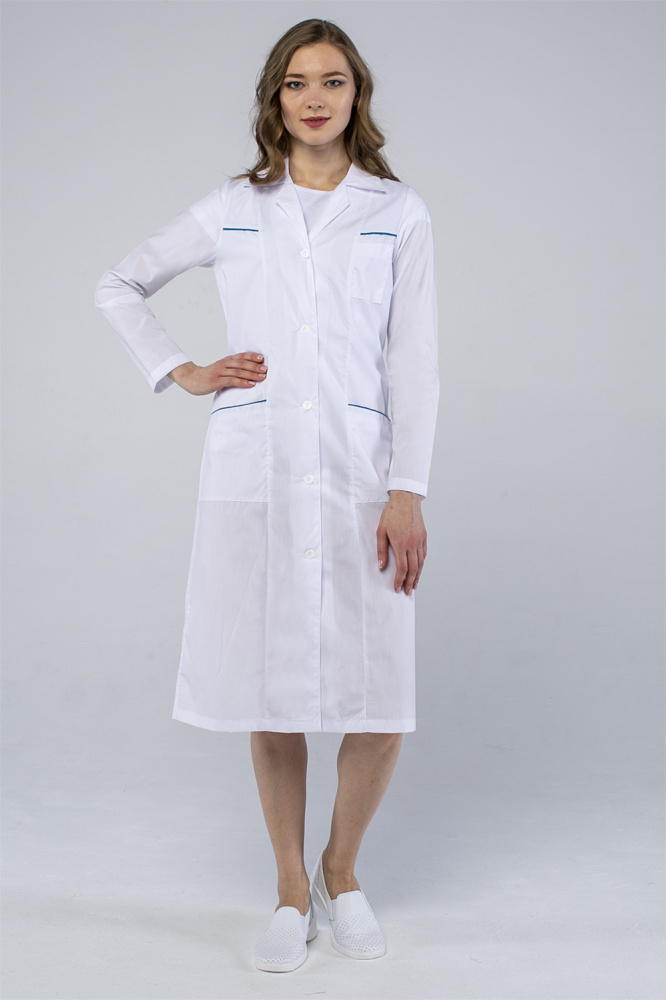 Халат женский Магнолия (тк.ТиСи), белый/синий (ЧЗ) (112-116/170-176)
