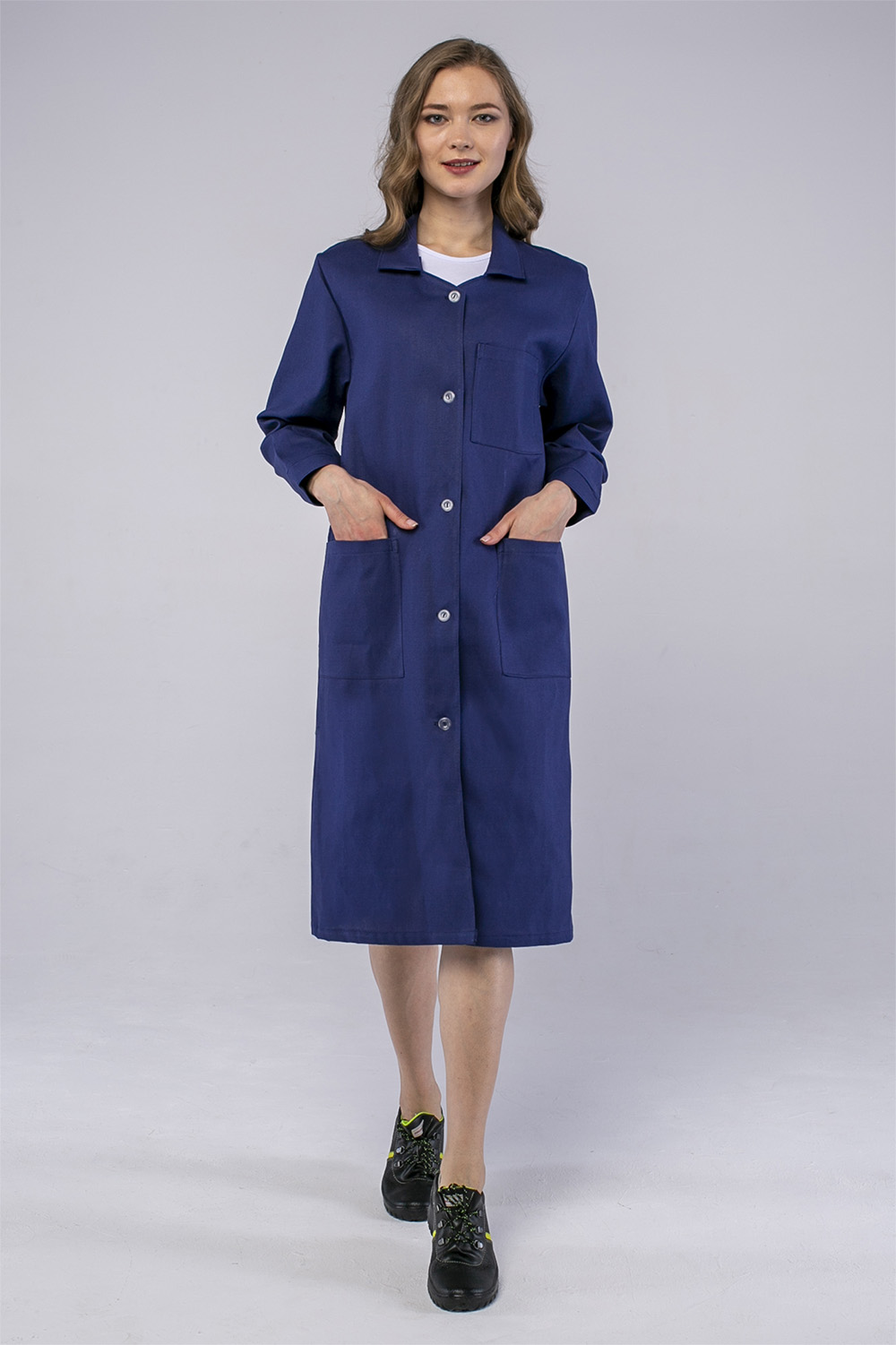 Халат женский рабочий (тк.Диагональ,195), т.синий (ЧЗ) ( 88-92/170-176)