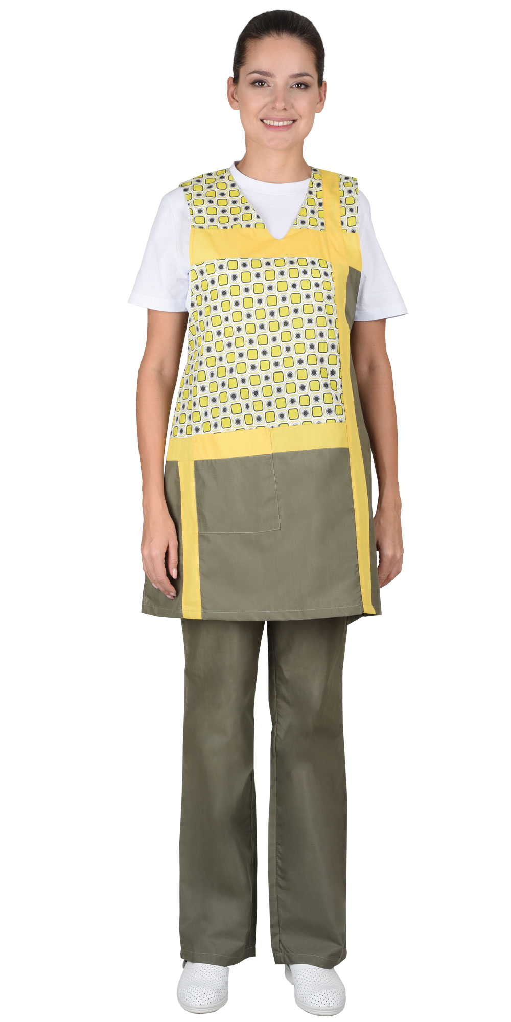 Комплект "ГАЛАТЕЯ" женский: фартук, брюки оливковый с желтым (ЧЗ)