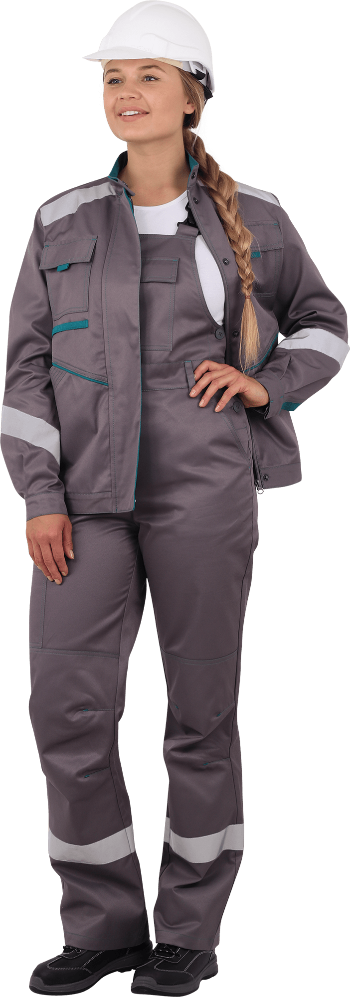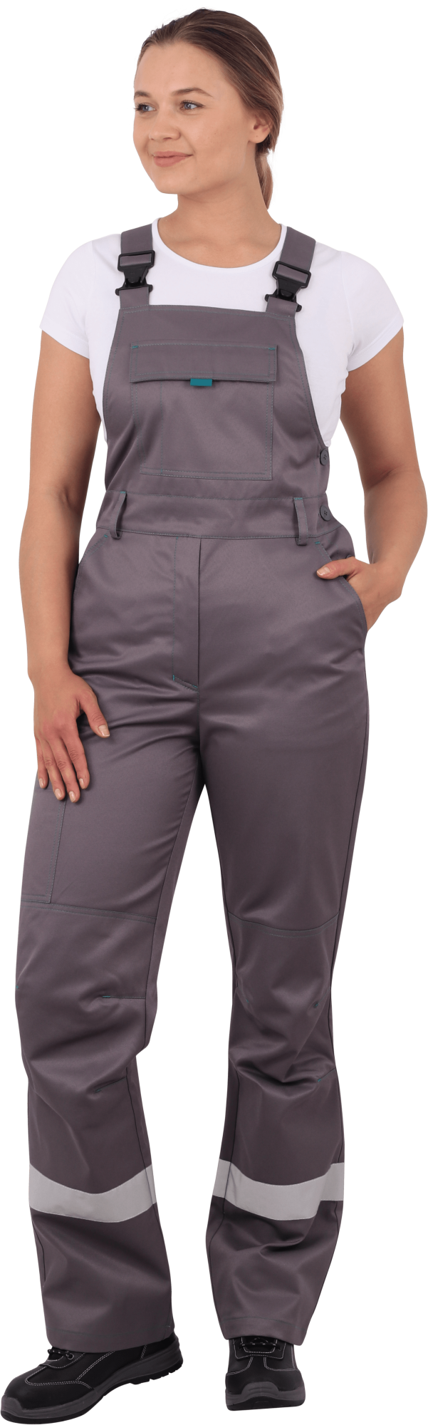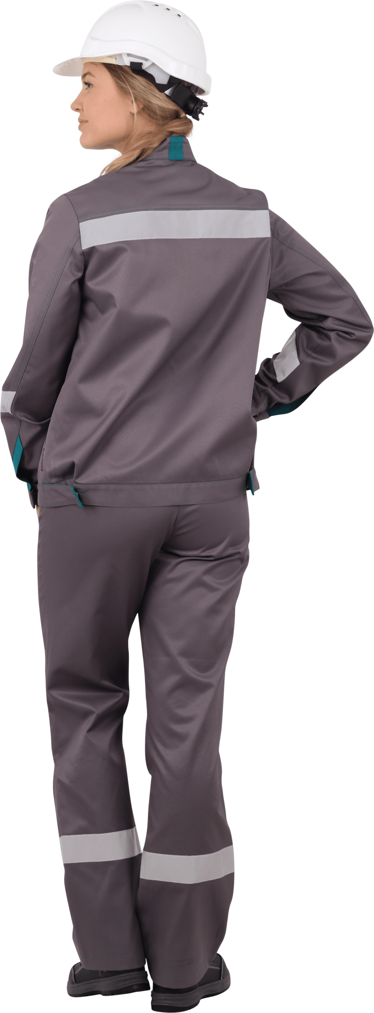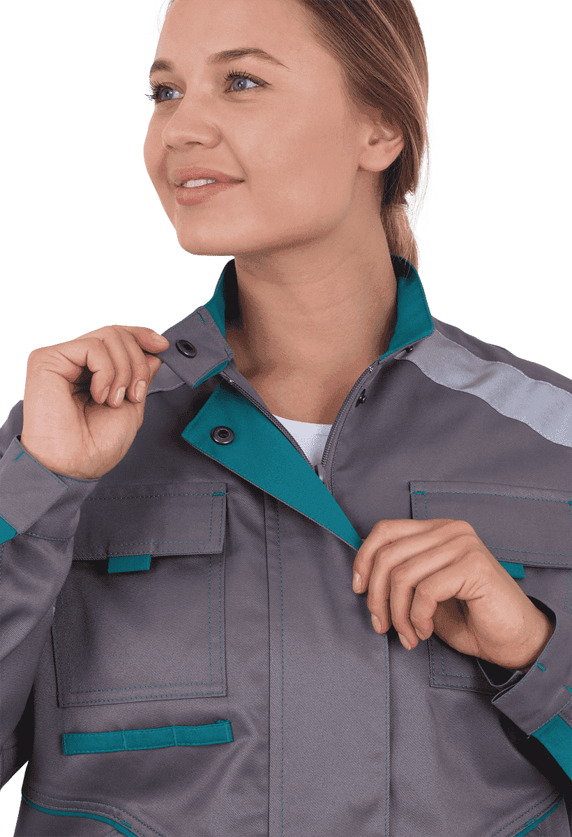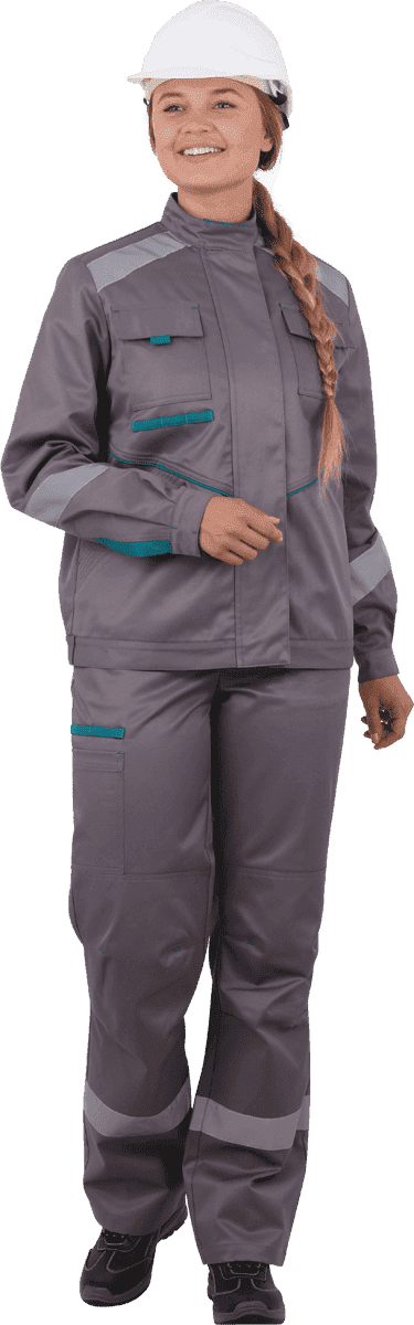 В костюме используется световозвращающая полоса 50 мм на полочке, спинке,