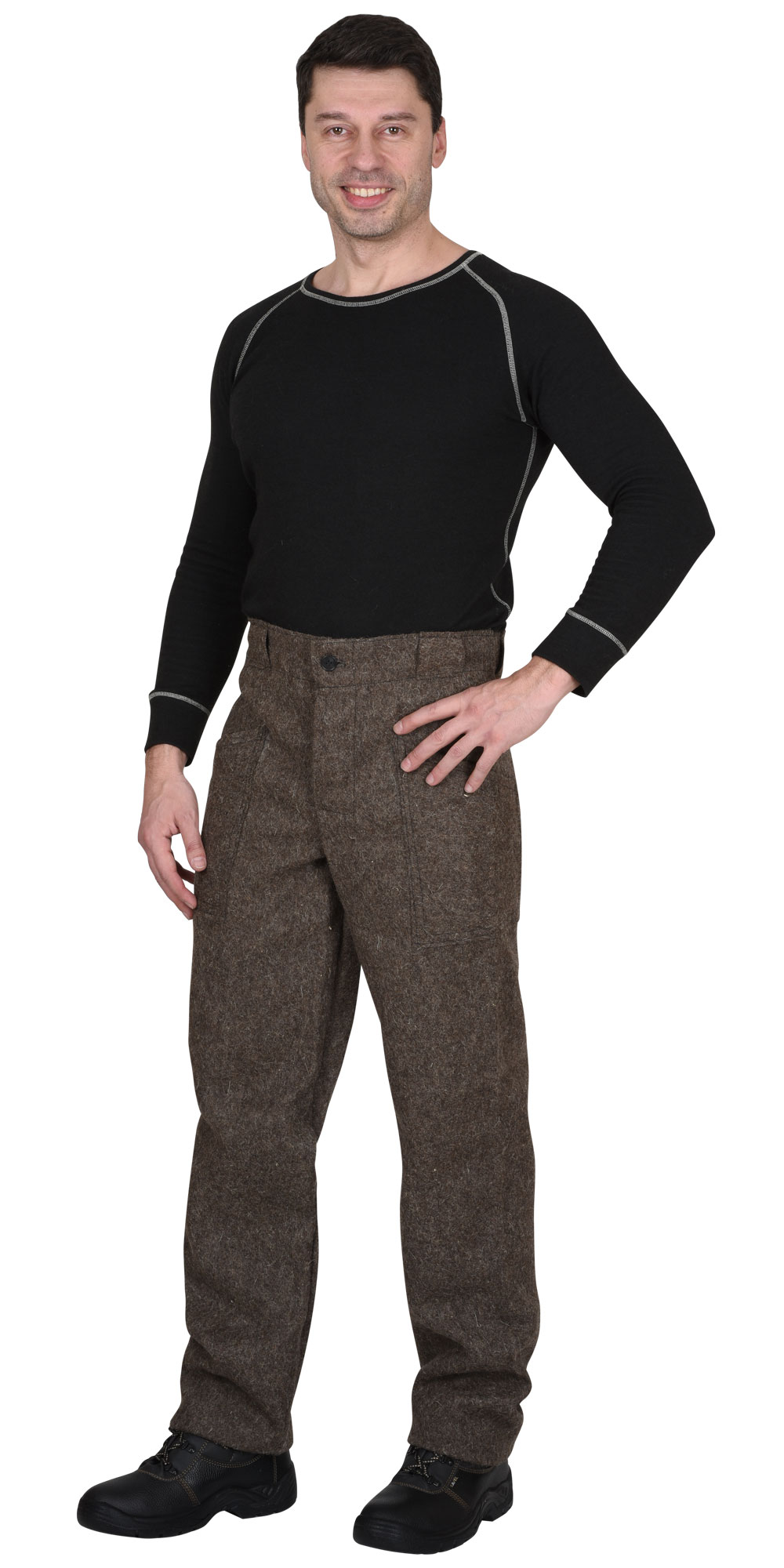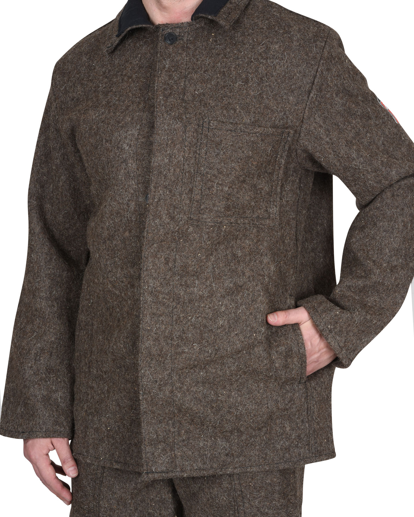 Сукно КЩС, пл. 760 г/кв.м, серое. Куртка с пот. застёжкой на пуговицы, отложным воротником, карманами. Брюки с застёжкой гульфика на пуговицы. Размерный ряд: с 88-92 по 120-124