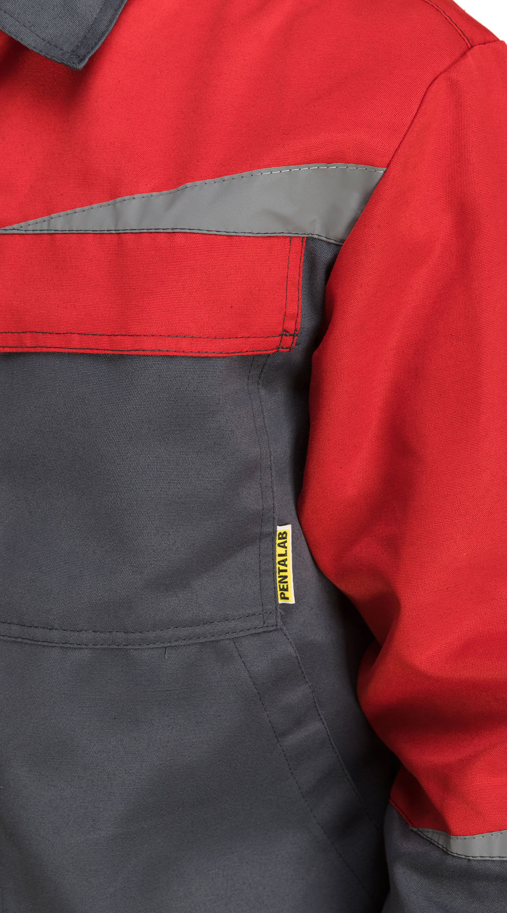 Костюм "Монтана" с полукомбинезоном (т.серый/красный) (Рейнир) PENTALAB (ЧЗ) (120-124/182-188)