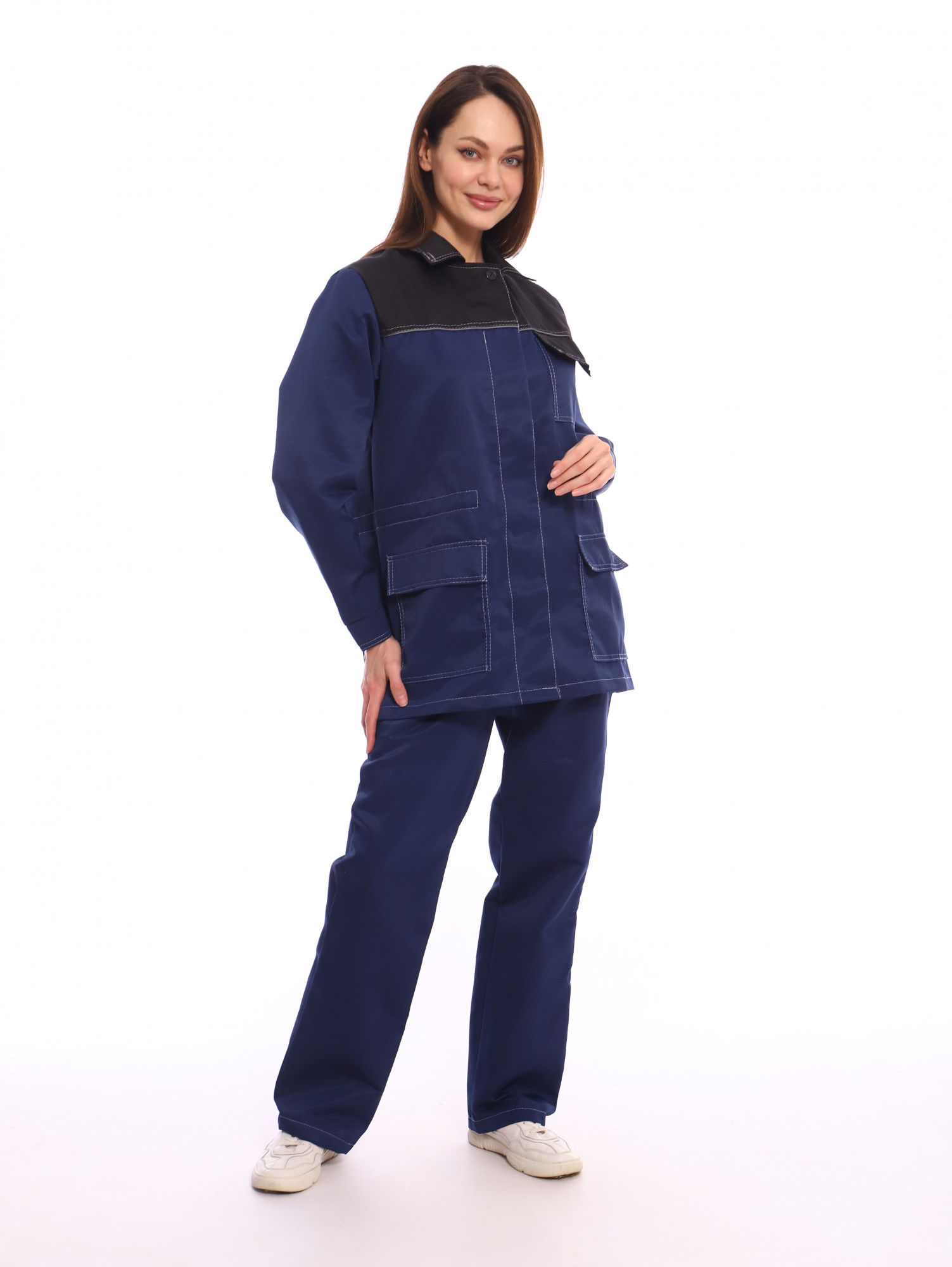Костюм ПЕРЕДОВИЦА женский (куртка+брюки) ткань смесовая, т.синий/черный КРОНОС