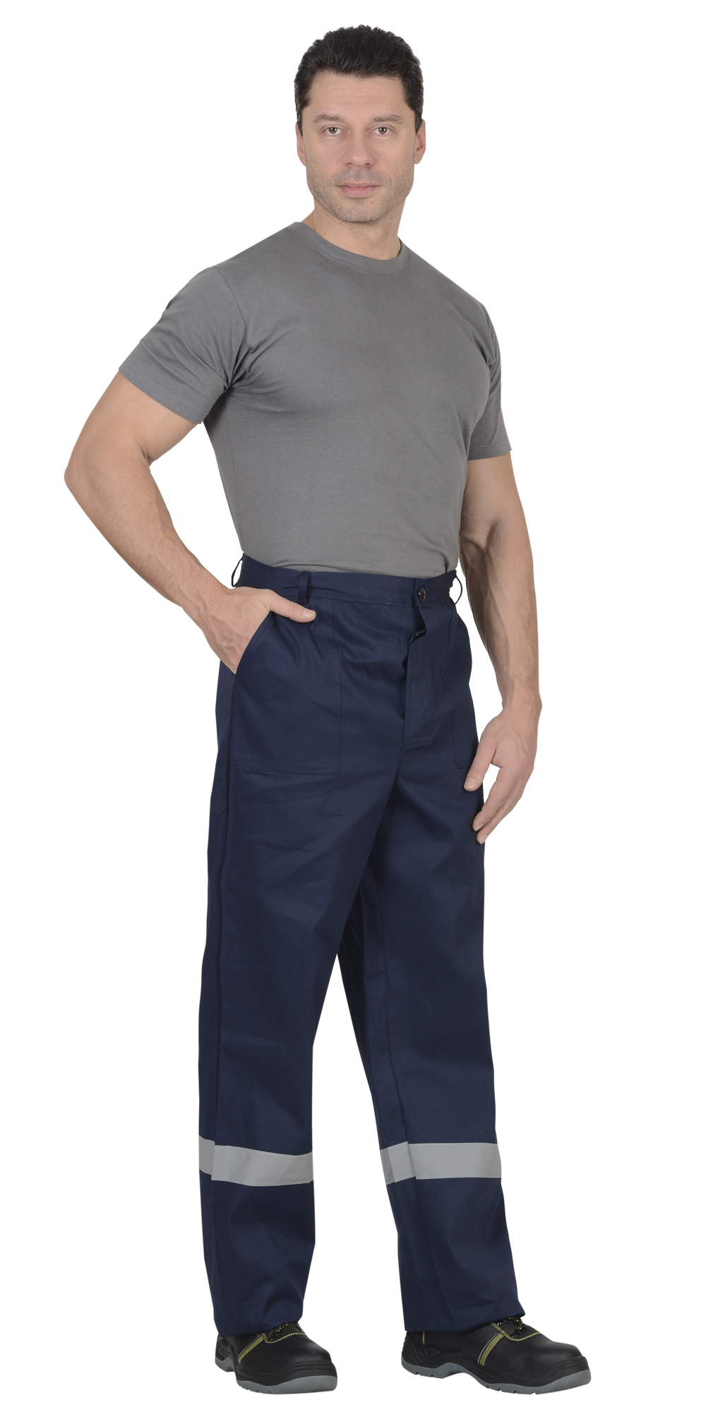 Куртка длинная, прямого силуэта с 3-мя накладными карманами с клапанами, с застежкой на пуговицы, Рукава с манжетами на пуговицах. С СОП- 50 мм по кокетке. Брюки прямого покроя с боковыми накладными карманами, на каждой брючине СОП-50мм. ГОСТ 12.4.280-2014.