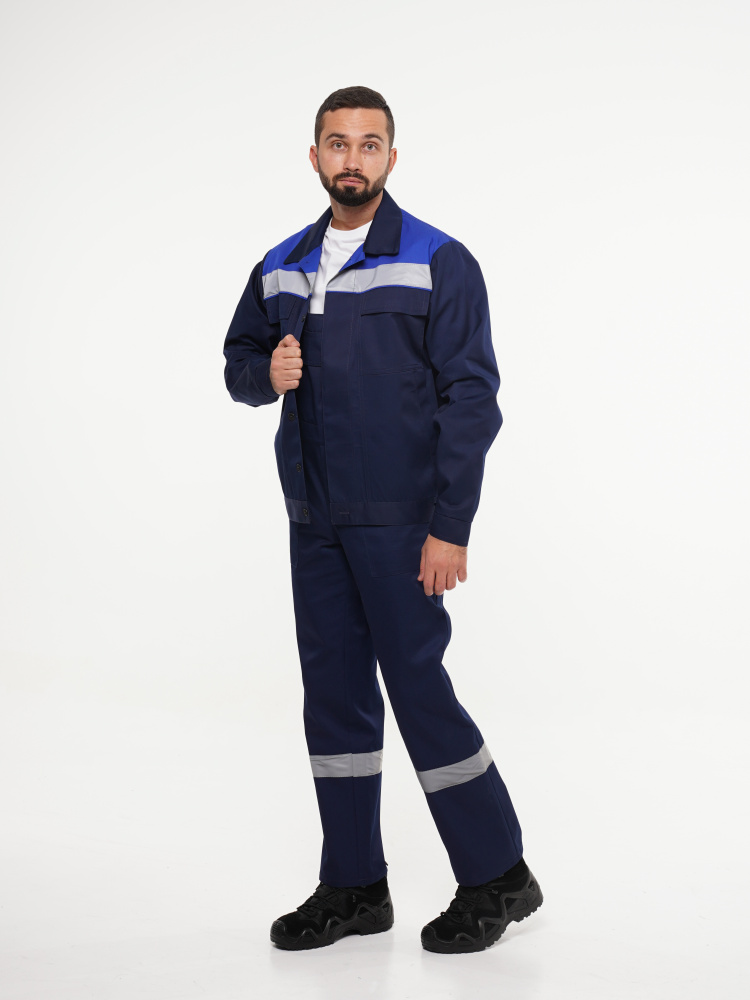 Костюм рабочий Сириус-Мастер №112 т.синий с васильковым (куртка, полукомбинезон) (ЧЗ) (120-124/194-200)