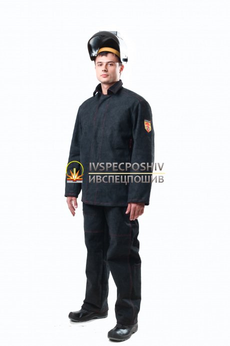 Куртка прямого силуэта с потайной центральной застежкой справа налево на 5 пуговиц. Форма рукавов соответствует основному положению рук сварщика при выполнении работ. Куртка имеет вентиляционные отверстия под проймами в боковом шве и по линии настрачивания кокетки.