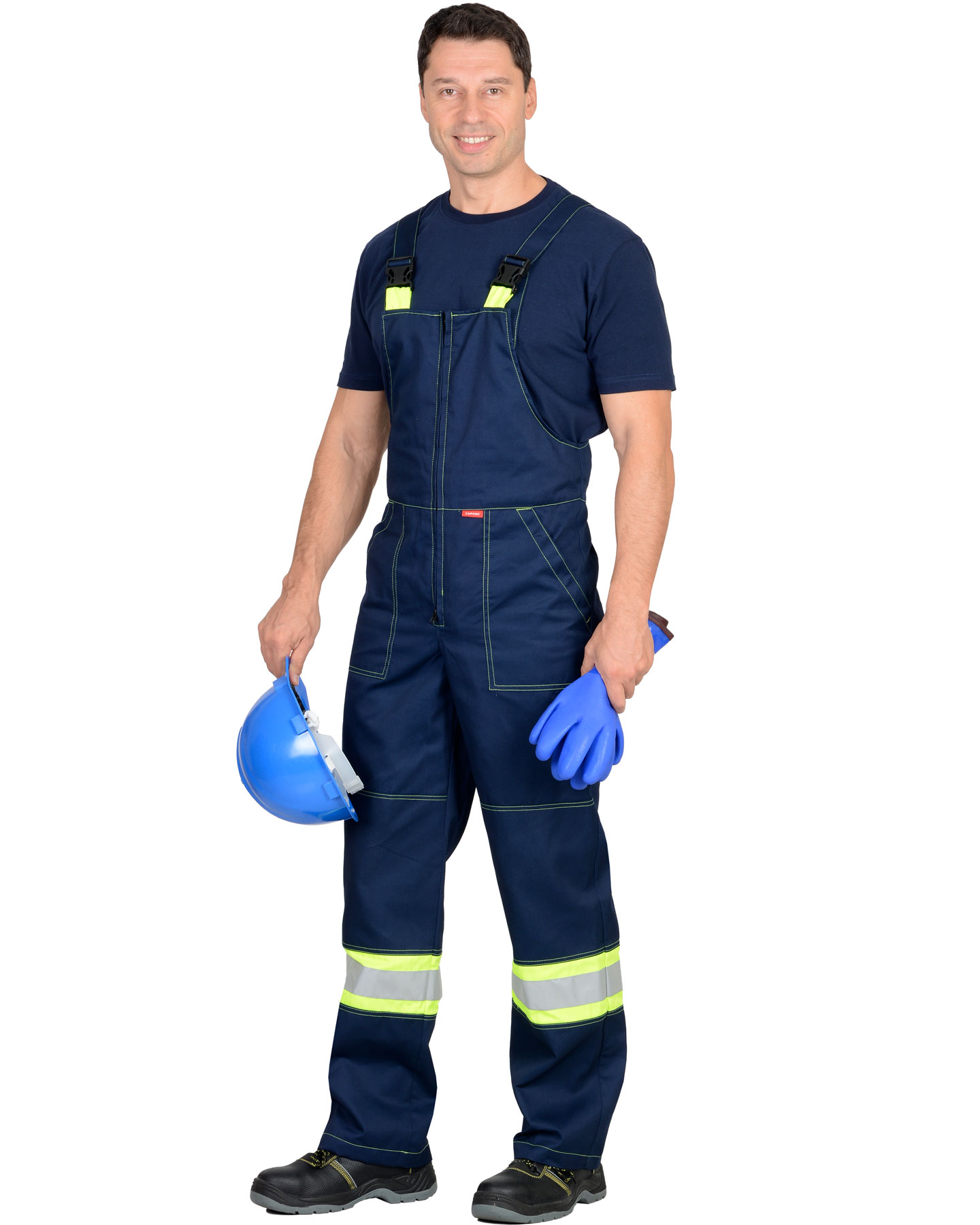 Полукомбинезон прямой, с центральной застёжкой на двухзамковую молнию, с накладными боковыми карманами, с наколенниками, с эластичной лентой по спинке для лучшего прилегания. Бретели регулируются при помощи эластичной ленты и пряжек фастексов.