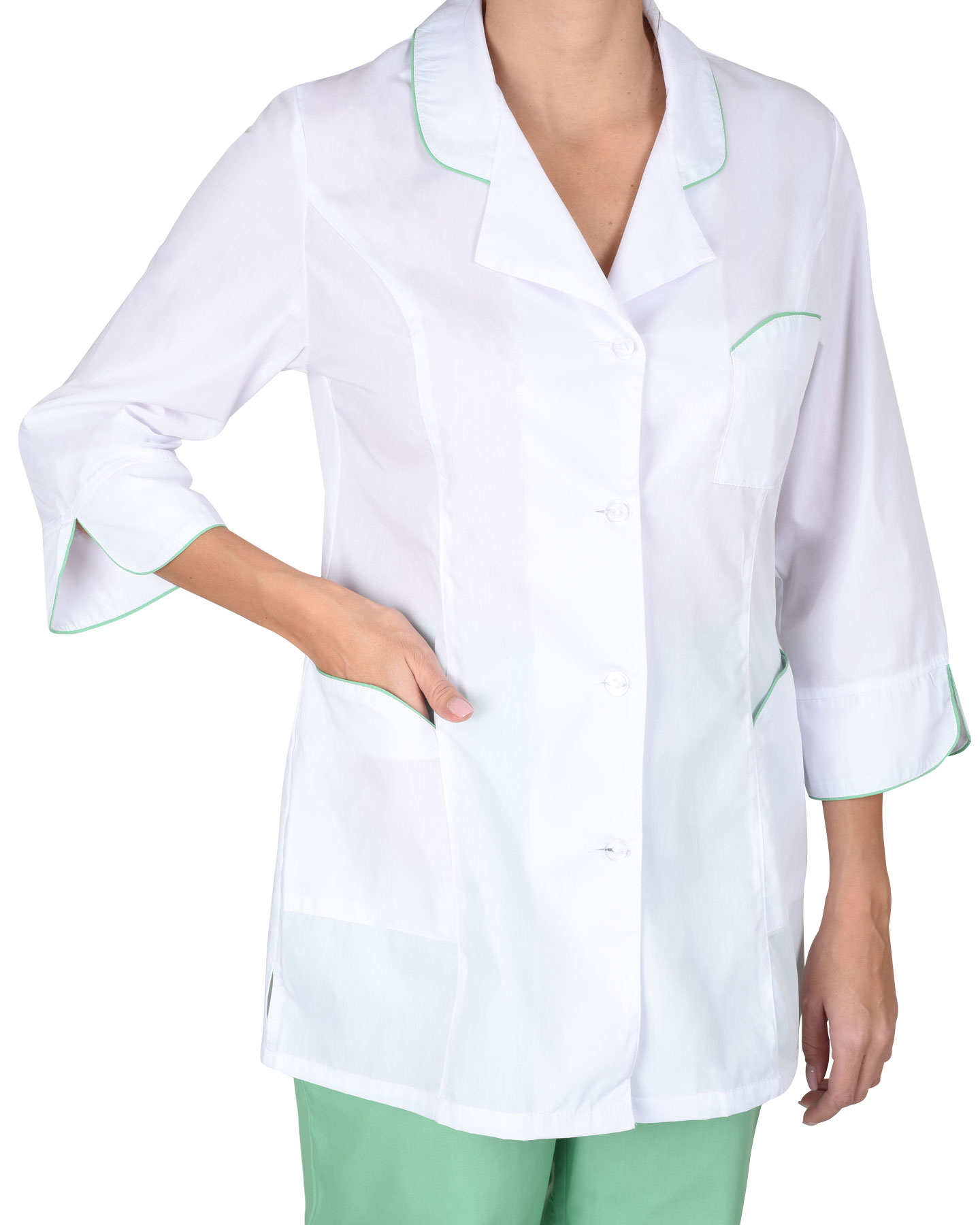 Костюм "Жасмин" женский: куртка, брюки, колпак белый с салатовым (ЧЗ) ( 88-92/158-164)