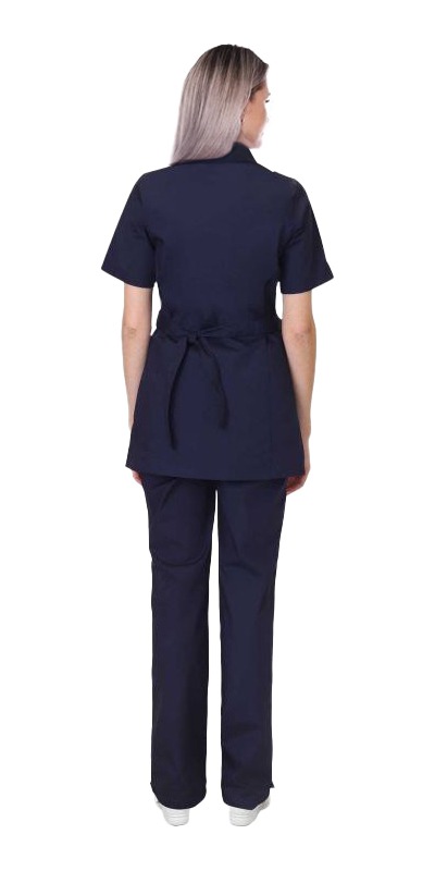 Современный удобный женский костюм со свободной посадкой, рекомендован для сферы косметологии и работников медицинских учреждений из высококачественной смесовой ткани прекрасно переносят многократные стирки и выглядят презентабельно даже при длительных сроках эксплуатации. Широкий размерный ряд продукции позволит без труда подобрать костюм правильно по фигуре, в соответствии со спецификой профессии и с учетом индивидуальных требований сотрудника. Костюм женский «Глория 2» для косметологов и медработников прост в уходе, не мнется и быстро сохнет, а материал долгое время сохранит свой первоначальный яркий цвет. Костюм состоит из блузы и брюк темно-синего цвета с белой отделкой. Сегодня современная мода вмешивается не только в подиумные и уличные образы. Она диктует свои правила разным сферам жизни, в том числе в сфере косметологии и медицине. Костюм состоит из прочной смесовой ткани ТИСИ, отталкивающей различного рода загрязнения. Материал устойчив к пятнам и истиранию, тем самым косметологи и медработники всегда будут выглядеть опрятно и привлекательно.
