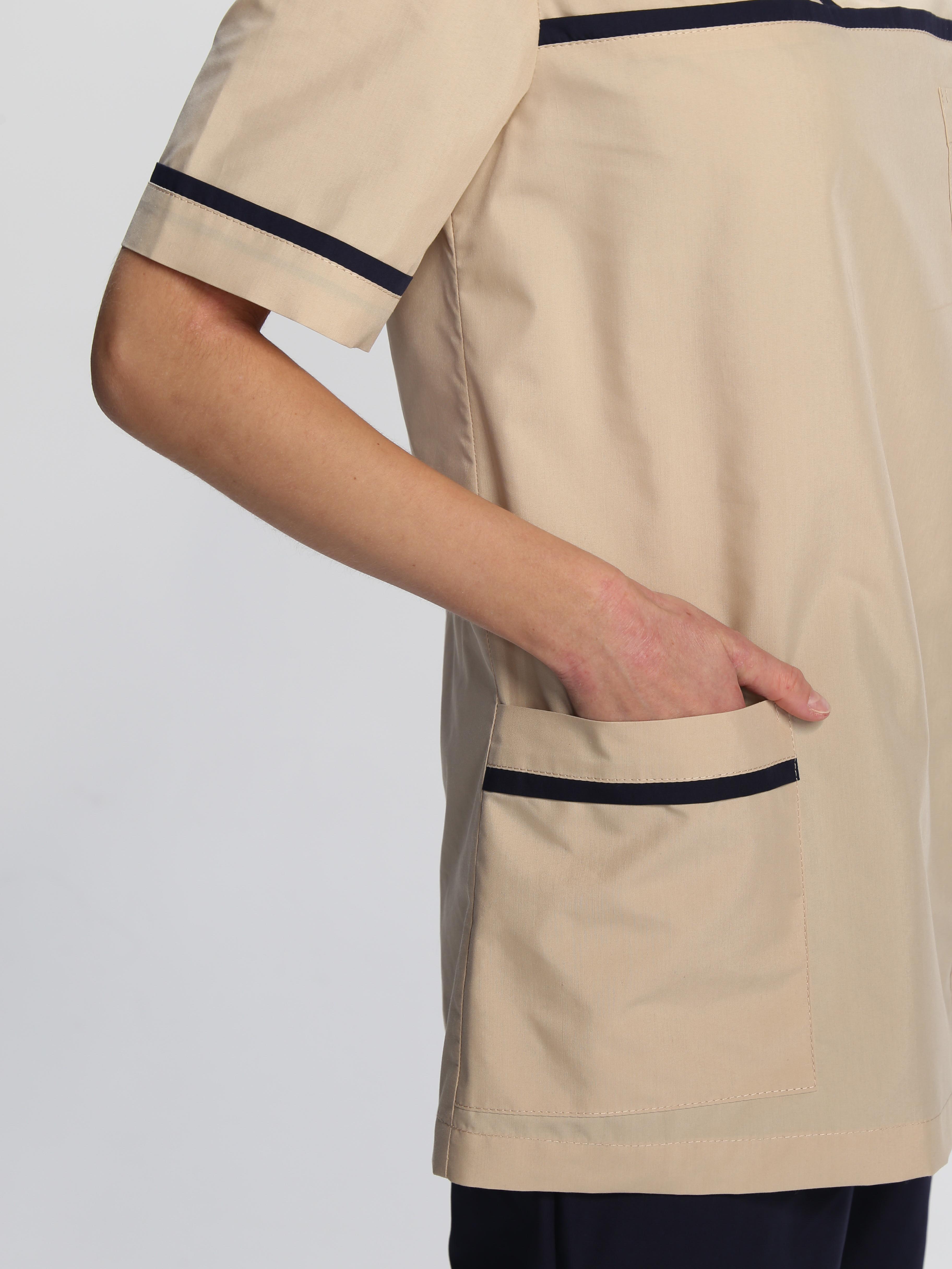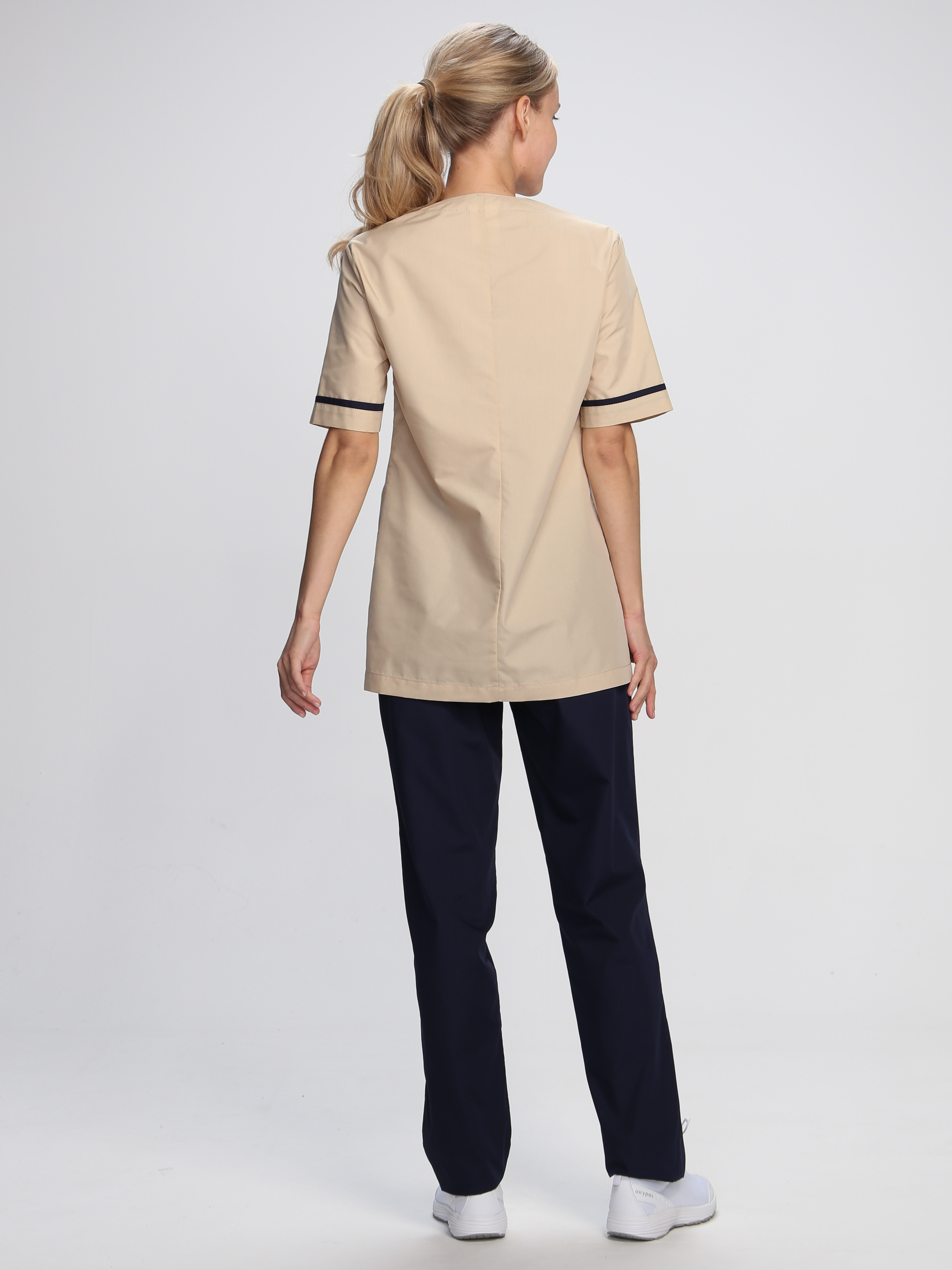 Стильный женский медицинский костюм «Ирис» разработан для сотрудниц медицинских учреждений, салонов красоты, массажных кабинетов или стоматологий. Костюм медицинский женский состоит из двух предметов: блузка + брюки женские. Спецодежда изготовлена в соответствии с ГОСТ, надежно защищает от общих производственных загрязнений. Костюм выполнен в нежных пудровых оттенках, замечательно сидит по фигуре. Прямая удлиненная блуза не стесняет движения, комфортна в работе. Для хранения мелочей предусмотрены вместительные карманы: боковые и нагрудный. Декоративный кант на карманах, горловине и кокетке придает костюму изысканный внешний вид. Рабочие брюки оснащены поясом из эластичной тесьмы для комфортной работы в течение длительного периода времени. Костюм изготовлен из легкой дышащей ткани, которая не выцветает и не садится после многократных стирок.