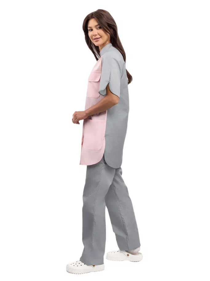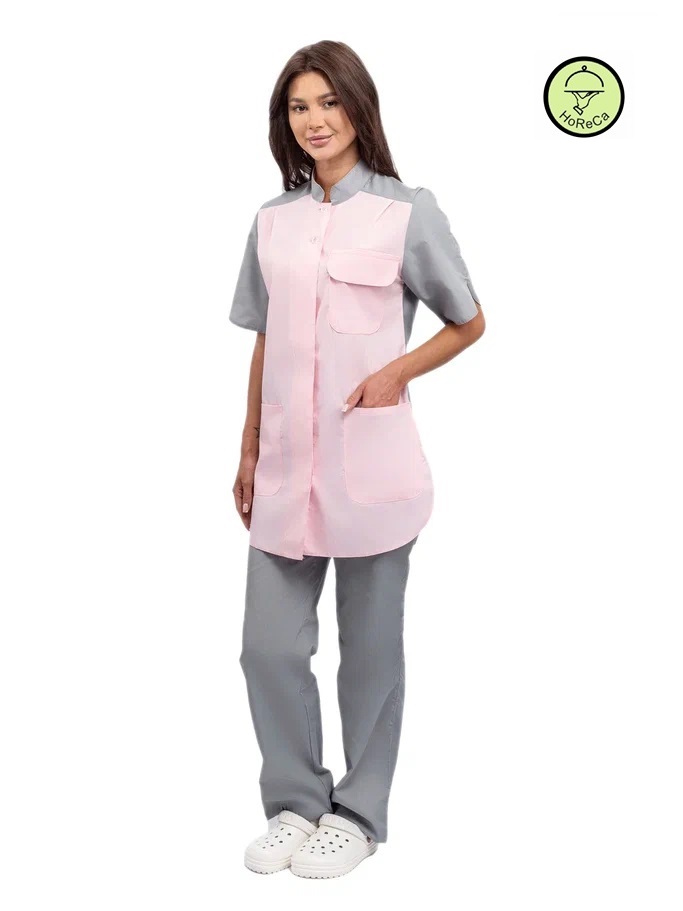 Современный удобный женский костюм со свободной посадкой, рекомендован для сферы обслуживания, клининга, гостиничного бизнеса (HORECA) из высококачественной смесовой ткани убережет от загрязнений и послужит отличным помощником в решении задач любой сложности. Костюм для горничных и уборщиц прост в уходе, не мнется и быстро сохнет, а материал долгое время сохранит свой первоначальный яркий цвет. Костюм состоит из блузы серо-розового цвета и брюк серого цвета. Спецодежда для горничных является особенным видом профессиональной униформы. Она создана для сферы обслуживания, работники которой всегда должны выглядеть безупречно. Одежда для горничных строго регламентируется администрацией гостиницы или отеля, поэтому ее состоянию уделяется большое внимание. Костюм состоит из прочной смесовой ткани ТИСИ, отталкивающей различного рода загрязнения. Материал устойчив к пятнам и истиранию, тем самым уборщицы всегда будут выглядеть опрятно и привлекательно.