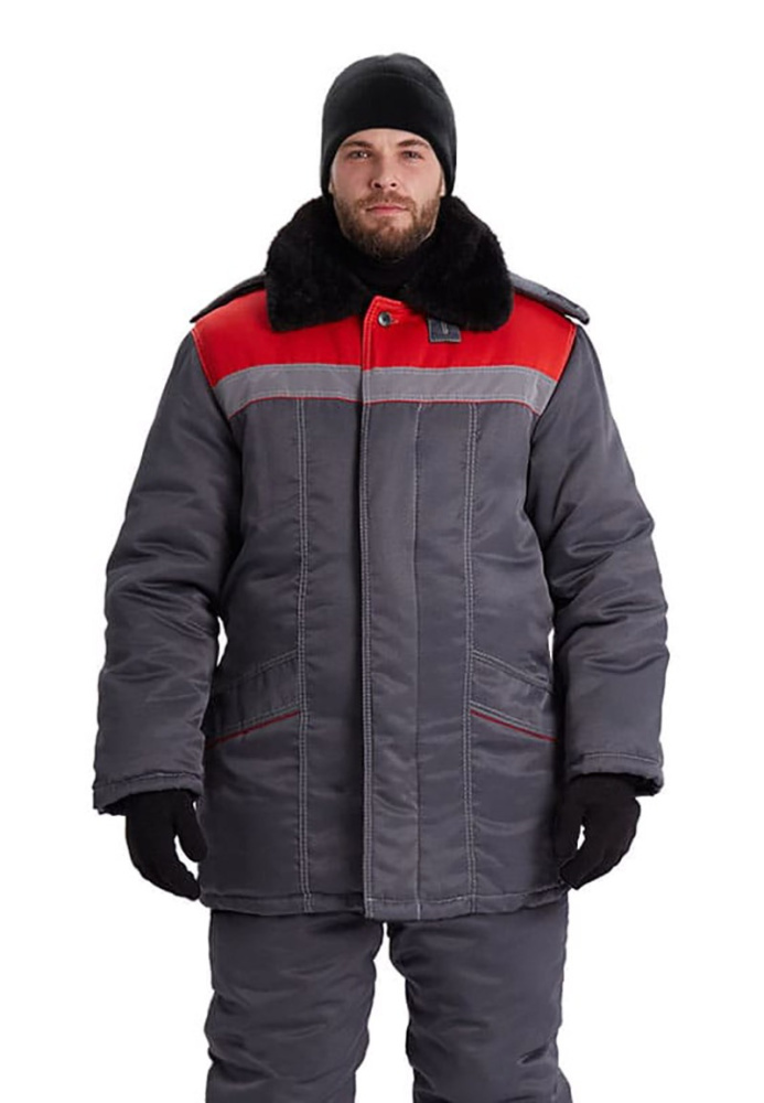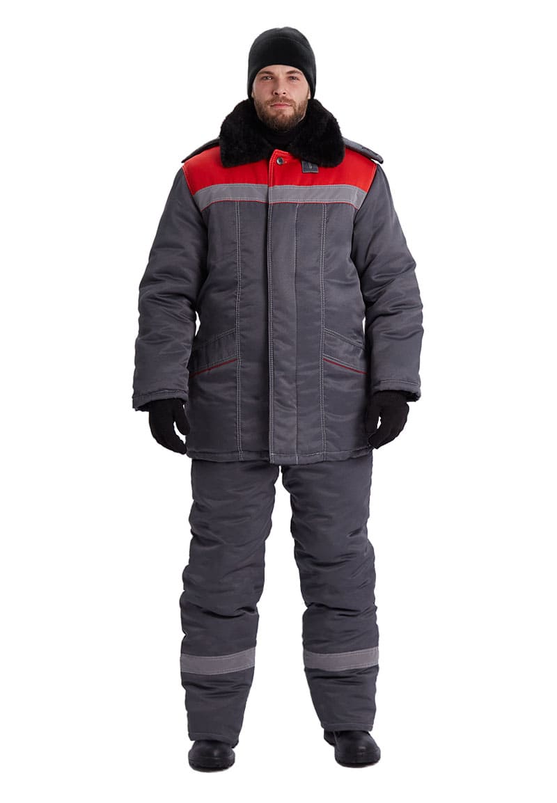 Костюм зимний "ВЬЮГА" куртка/полукомб. цвет: т.серый/красный URSUS (ЧЗ) (104-108/182-188)