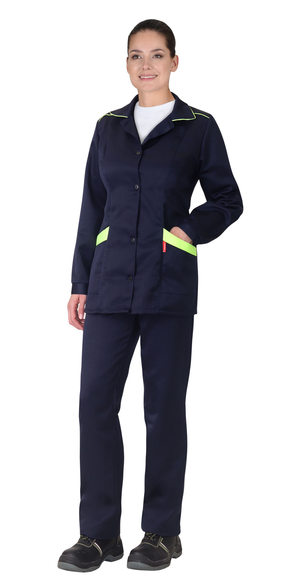 Костюм "ЗОЛУШКА" женский: куртка, брюки синий с лимонным кантом (ЧЗ) распродажа ( 80-84/158-164)