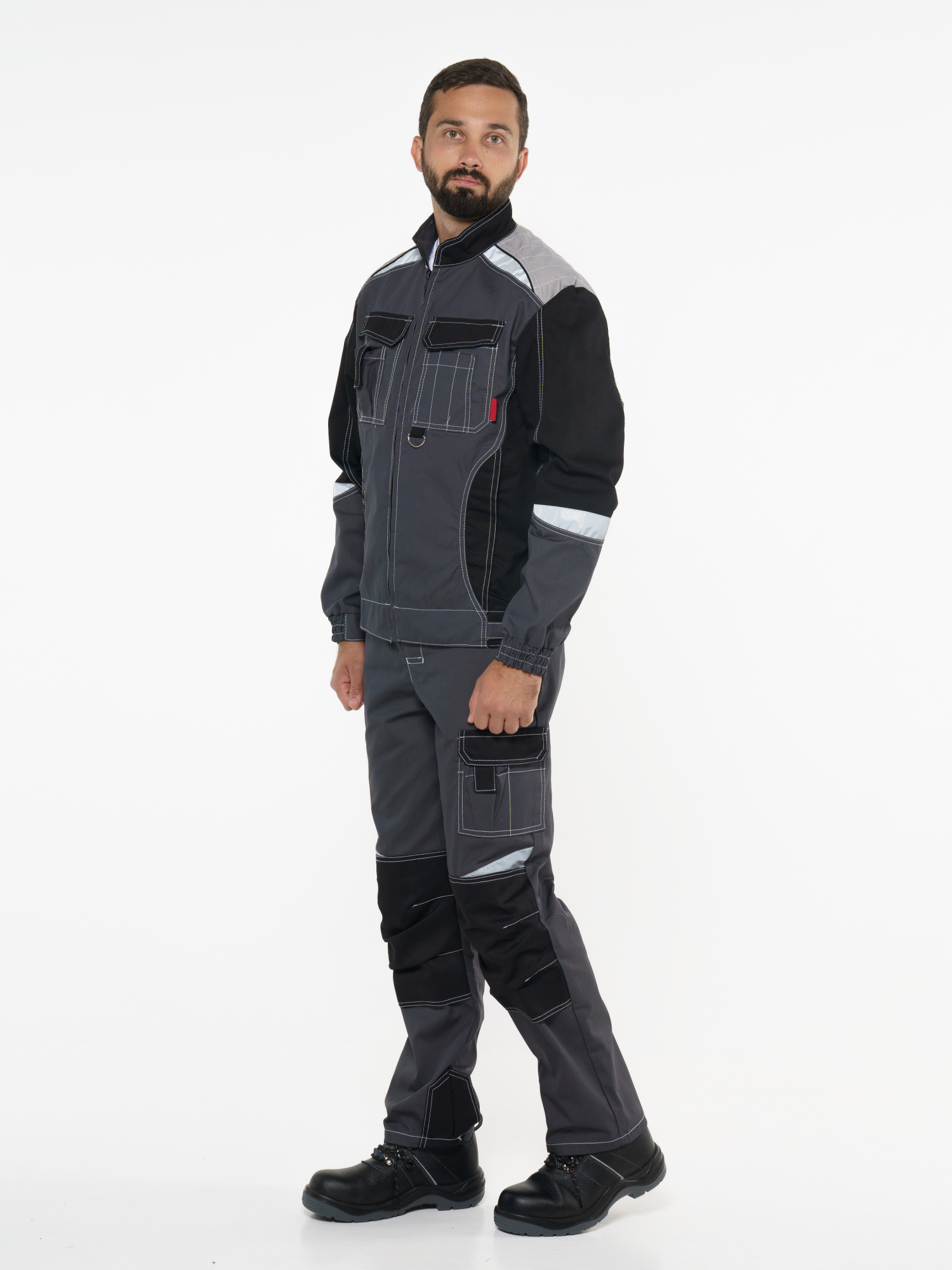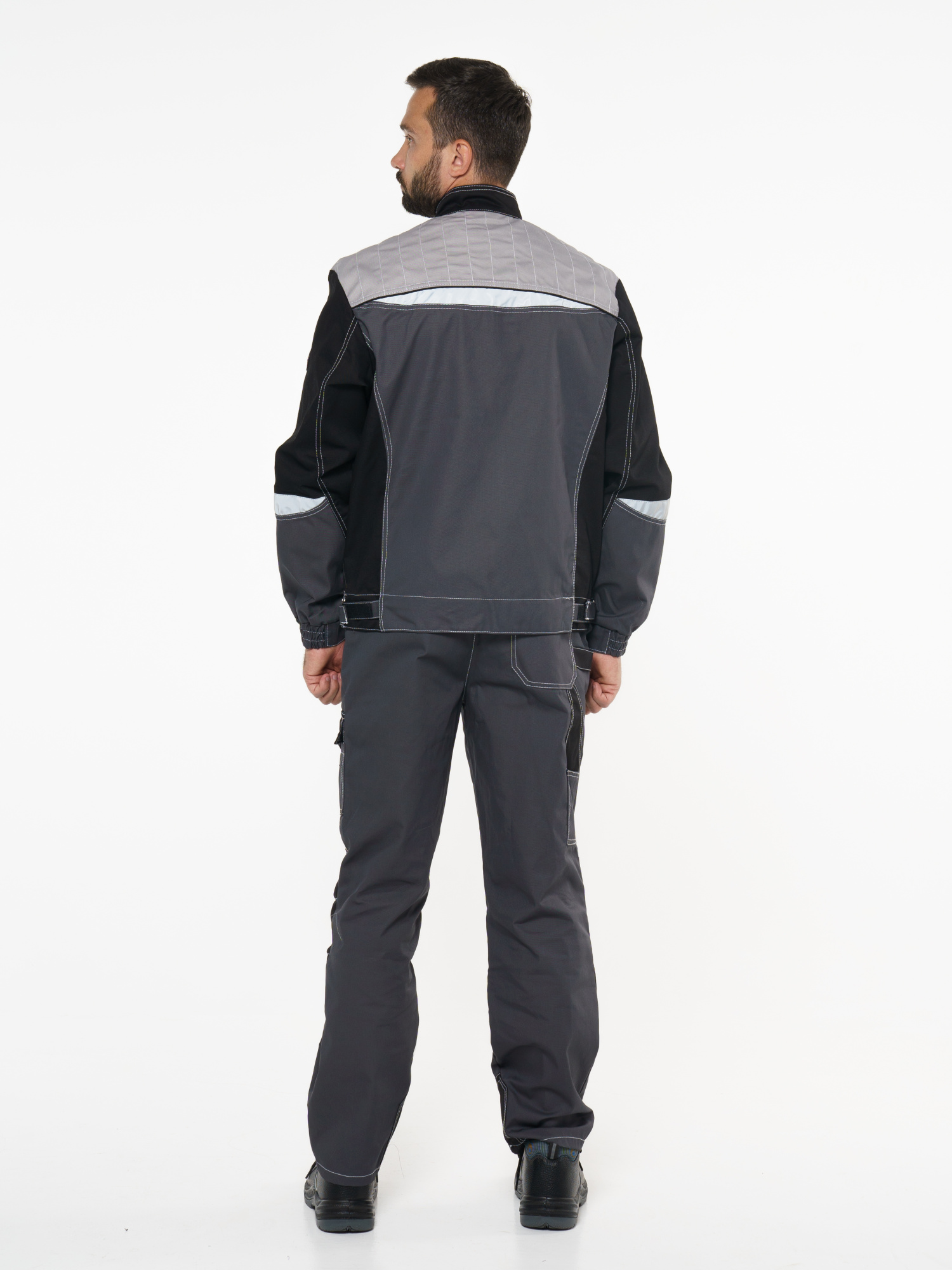 Куртка прямого силуэта; короткая; воротник стойка; с центральной застёжкой на молнию; с верхними фигурными карманами с фигурными клапанами; низ регулируется при помощи хлястиков с полукольцами. ГОСТ 12.4.280-2014