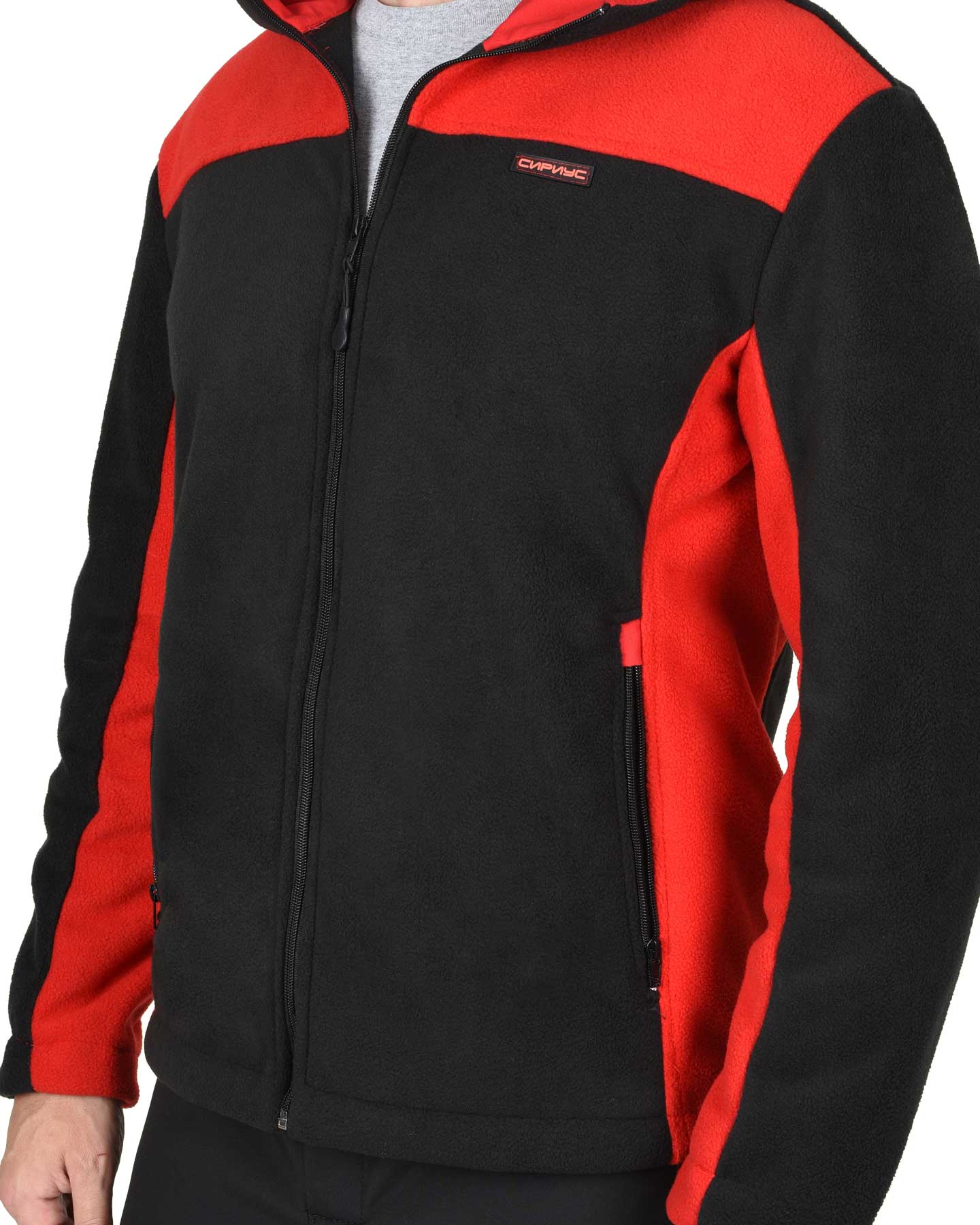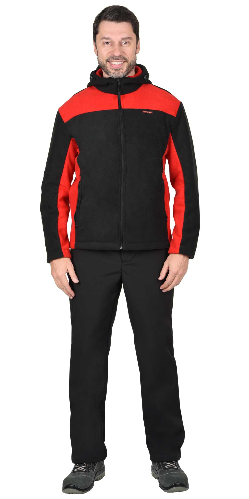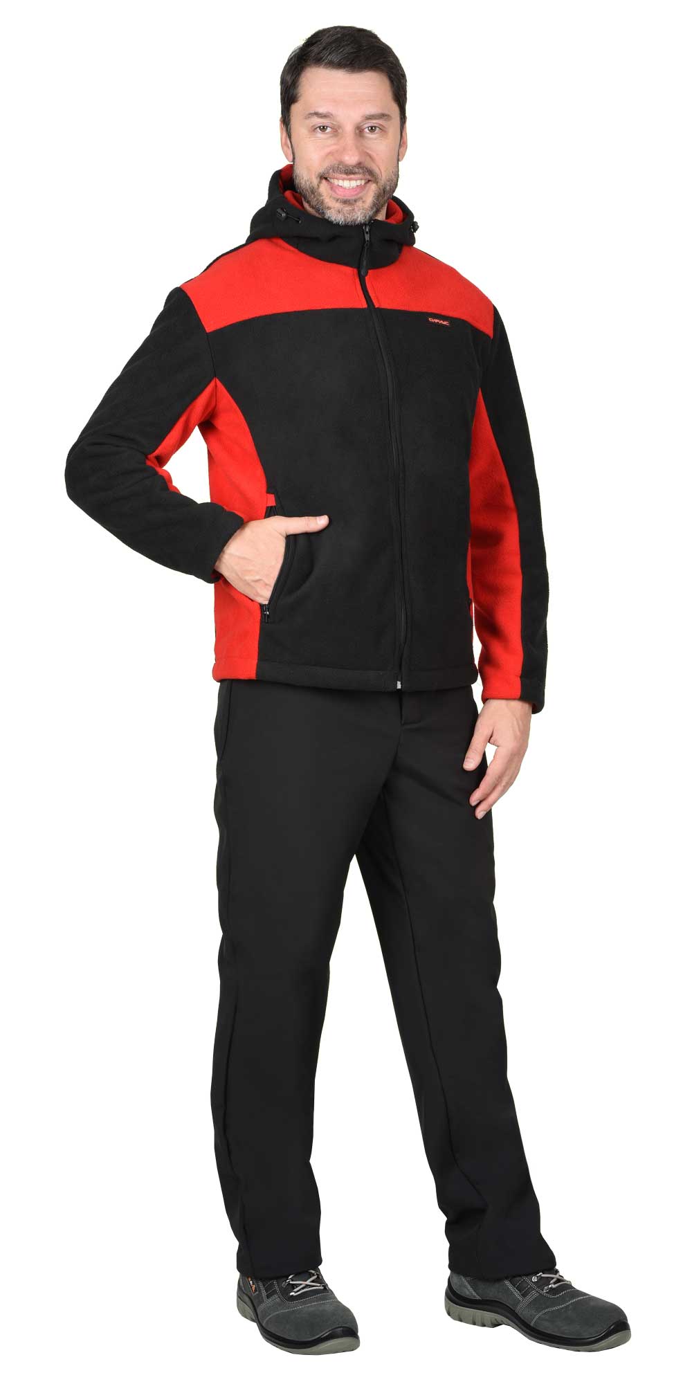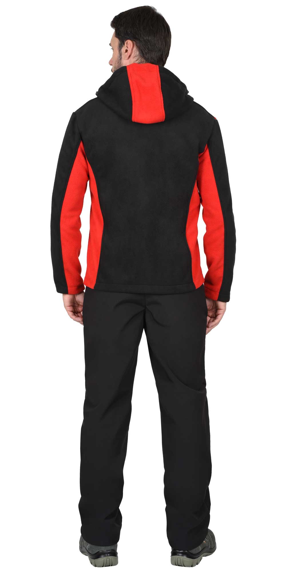 Куртка флисовая "ТЕХНО" (флис дублированный) черная с красным