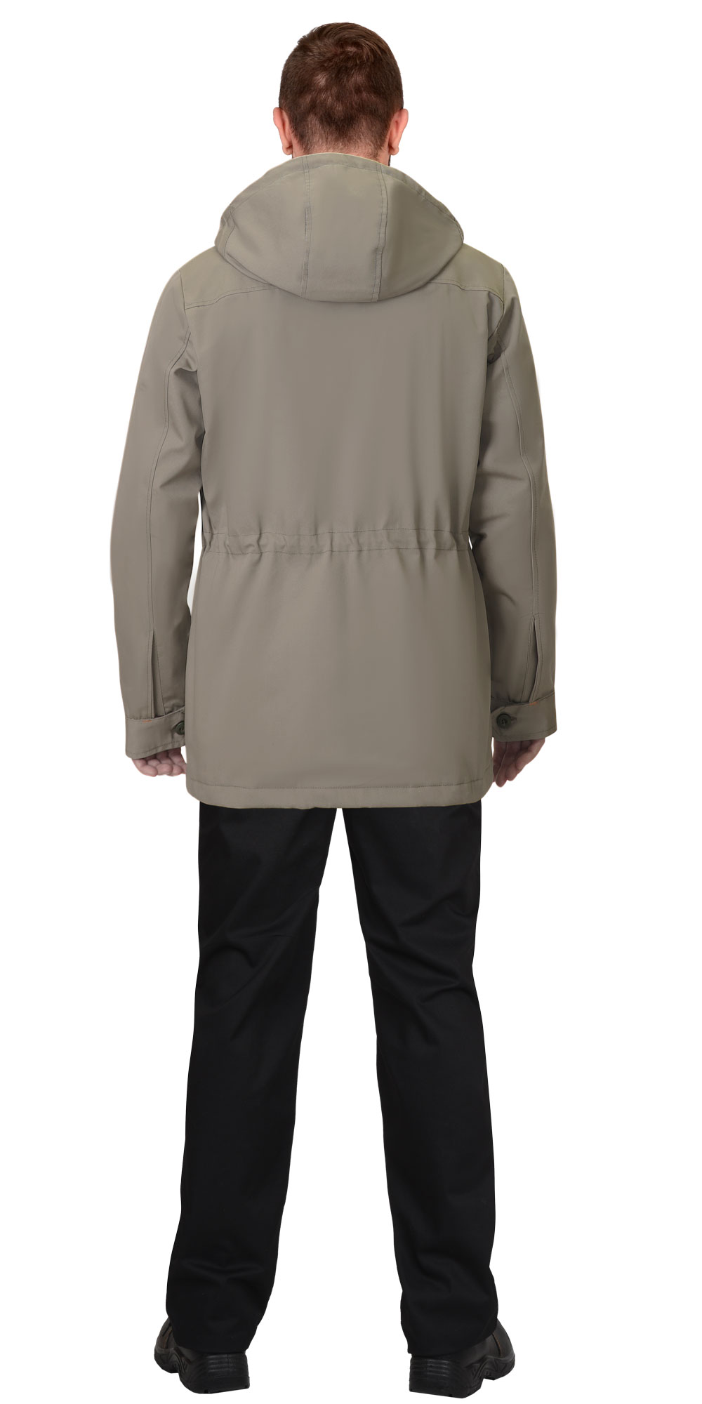 Куртка прямого силуэта, на подкладке, с фигурной линией горловины и втачным капюшоном. Центральная застежка на молнию с ветрозащитным клапаном, застегивающимся на пуговицы и липучку. Верхние прорезные карманы "листочка" с втачными концами, нижние накладные объемные карманы с фигурным клапаном, застегивающимся на пуговицу. Рукава двухшовные с декоративными вставками по локтевому шву и манжетами, застегивающимися на пуговицу.