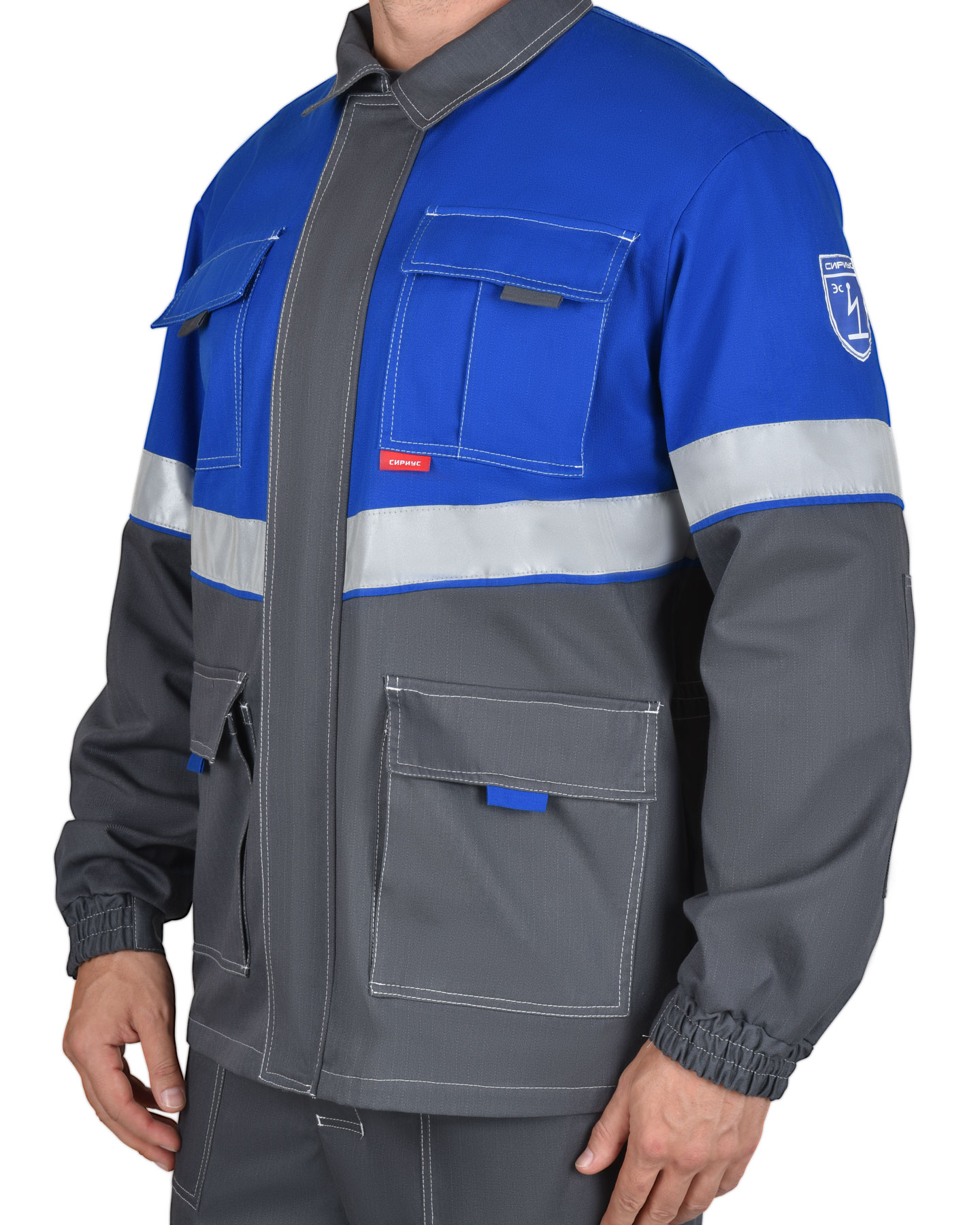 Куртка "Самотлор" длинная, серая с васильковым (ЧЗ)