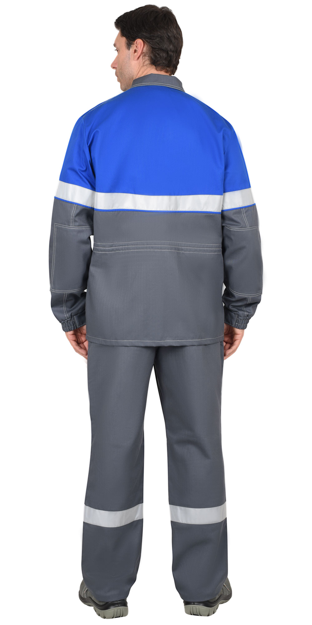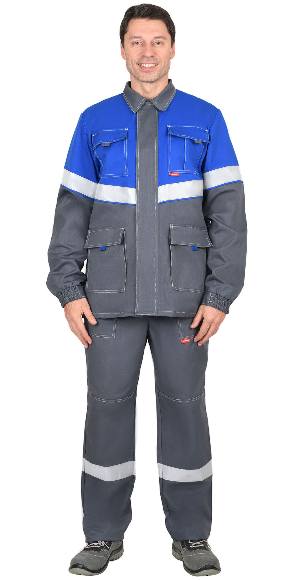 Куртка "Самотлор" длинная, серая с васильковым (ЧЗ) (104-108/182-188)