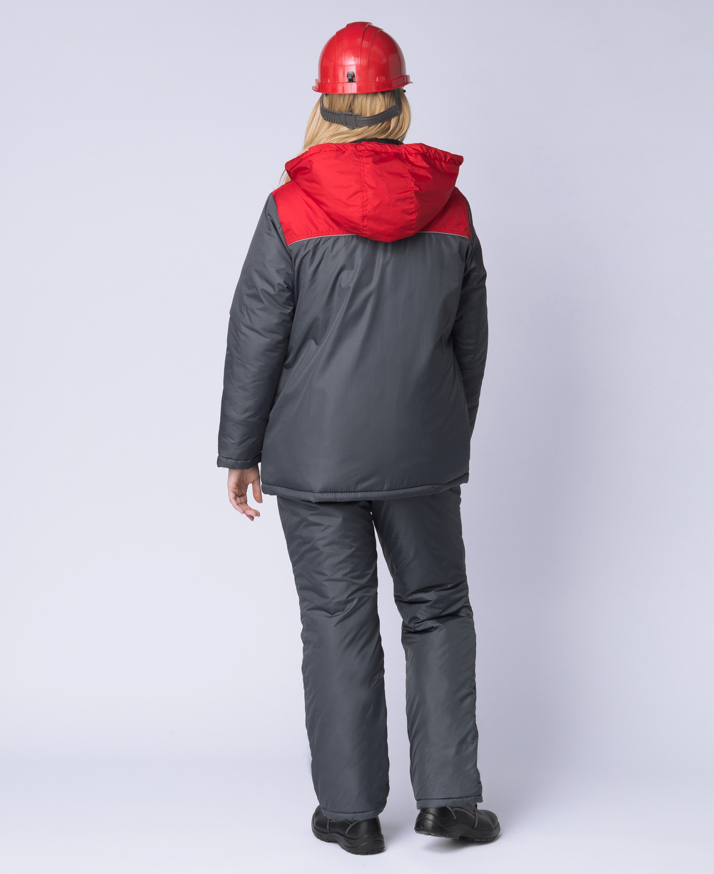 Куртка зимняя женская Снежана (Сакрин) (Дюспо), темно-серый/красный (ЧЗ) (120-124/182-188)