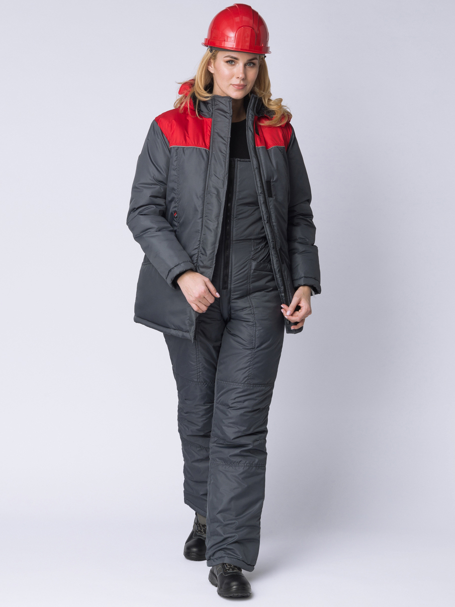 Куртка зимняя женская Снежана (Сакрин) (Дюспо), темно-серый/красный (ЧЗ) ( 96-100/170-176)