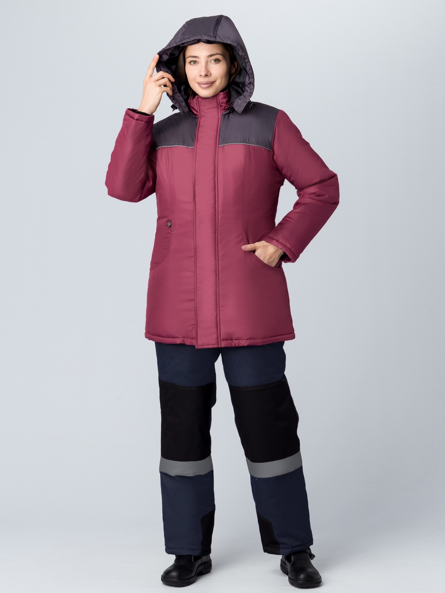 Куртка зимняя женская Снежана (тк.Дюспо), бордовый/т.серый (112-116/170-176)