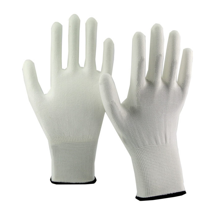Белые нейлоновые перчатки с полиуретановым покрытием ладони и пальцев. Бесшовная «дышащая» основа из нейлона с плотностью вязки 13 петель на дюйм обеспечивает тактильную чувствительность. Полиуретановое покрытие дает эффект «липкости», что исключает проскальзывание предметов. Анатомическая форма снижает усталость рук.