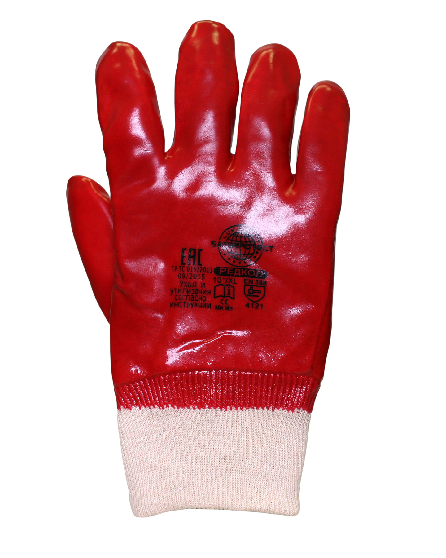 Перчатки Safeprotect "РЕДКОЛ" (основа джерси-100% хлопок, ПВХ покрытие красного цвета) (XL (10))