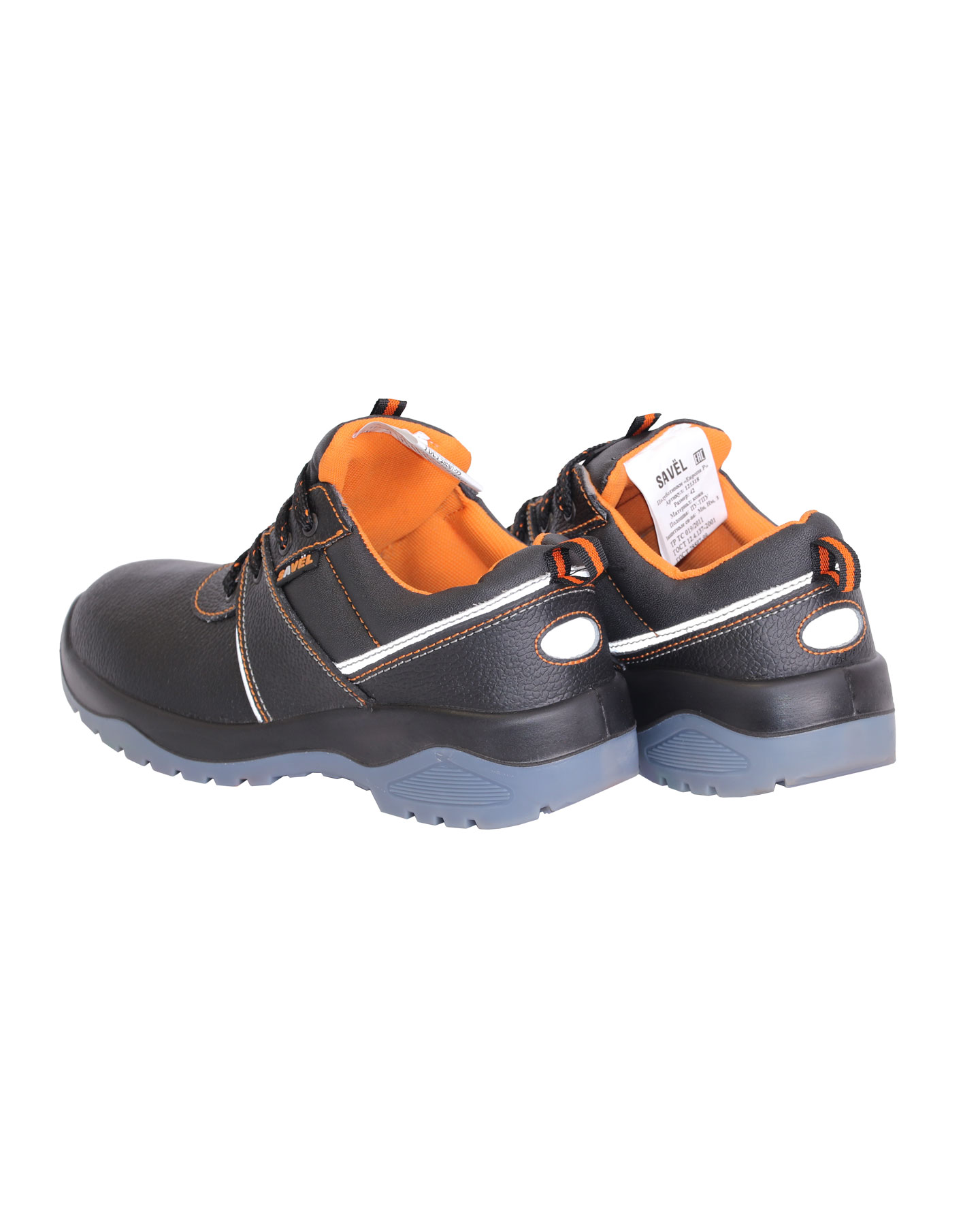 Верх обуви изготовлен из кожи со специальным покрытием для защиты от ОПЗ, МВ, МВО. Застежка на шнурок. Подошва двухслойная ПУ/ТПУ: полиуретан обладает амортизирующими свойствами, гасит ударные нагрузки, а также придает обуви лёгкость, комфорт и повышенные теплозащитные свойства. Термополиуретан обладает гибкостью и прочностью, поэтому обувь с подошвой из этого материала прослужит долго. Литьевой метод крепления подошвы обеспечивает с верхом обуви единое целое, в результате достигается полная герметичность в месте литья. Такой метод крепления является самым прочным и долговечным на сегодняшний день. Подошва сохраняет свои свойства в широком диапазоне температур и обладает стойкостью к воздействию масел, сырой нефти, нефтепродуктов. Подклад в полуботинках серии "SAVEL-Европа" оранжевого цвета и выполнен из воздухопроницаемого нетканого материала «типика», который обеспечивает комфортный микроклимат, быстро сохнет и имеет высокую степень устойчивости к истиранию. Верх ботинка имеет контрастные отделочно-скрепляющие строчки оранжевого цвета, как и подкладка, а также световозвращающие вставки для лучшей видимости в тёмное время суток. Колодка обладает полнотно-размерными характеристиками защитной обуви, предназначенной для эксплуатации в летний и весенне-осенний периоды, даёт возможность работать полный рабочий день с комфортом и без усталости. Обувь предназначена для работы в нефтегазовой, горнодобывающей, энергетической, химической промышленности, на транспорте, в агропромышленном комплексе и сервисных службах.