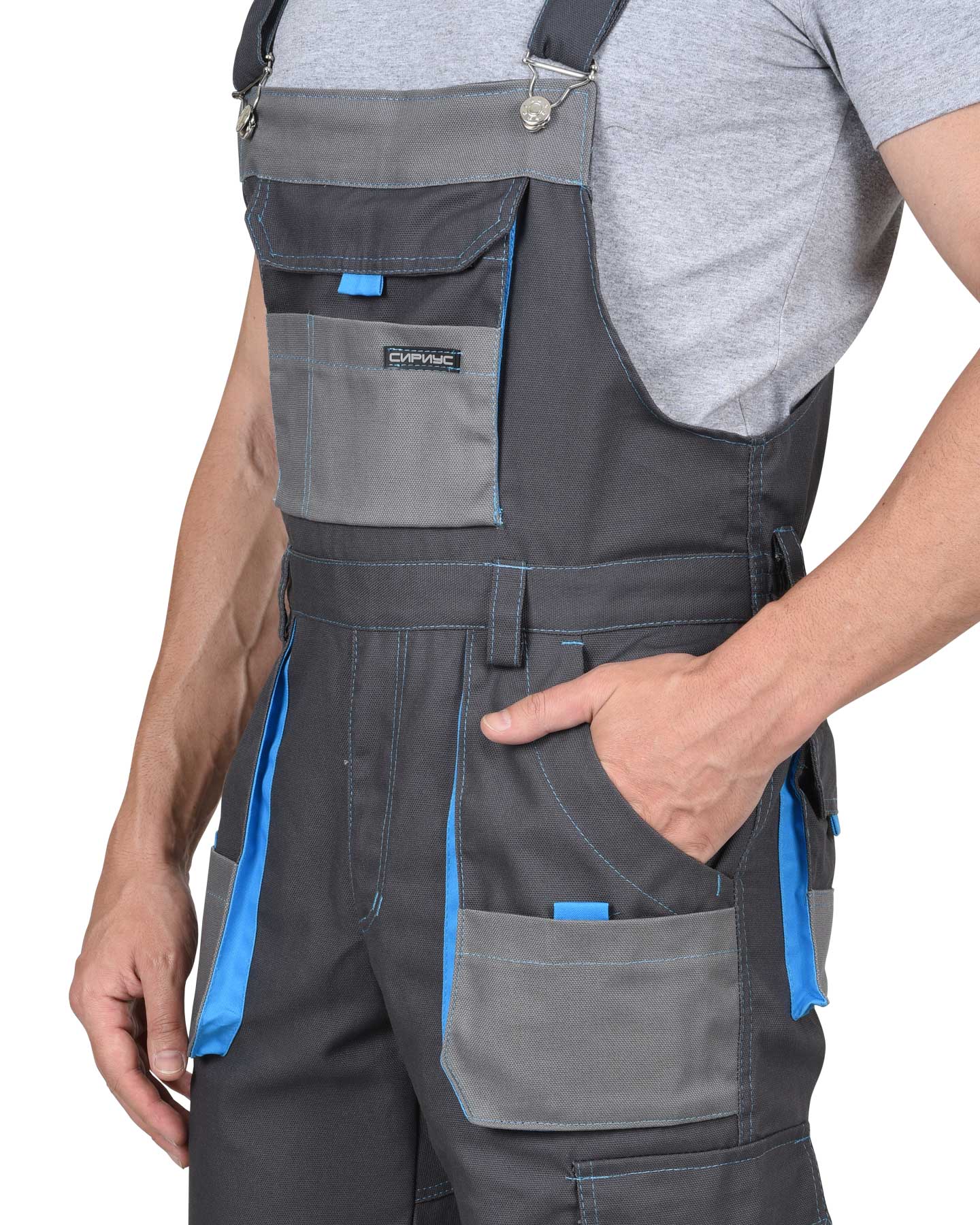 Полукомбинезон "Двин" т.серый со средне серым и голубой отделкой
