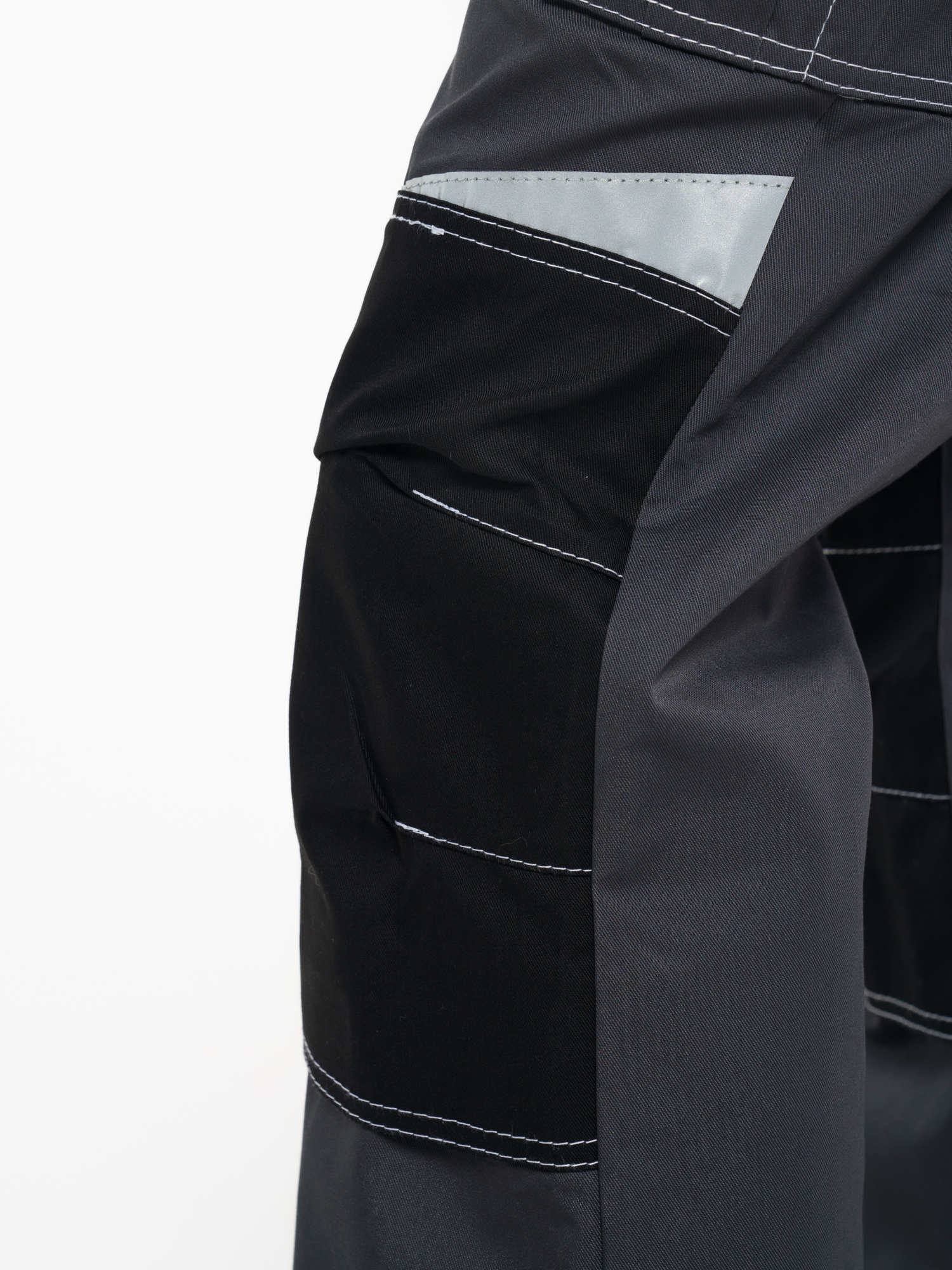Полукомбинезон с застёжкой гульфика на молнию и застёжкой в боковом шве на пуговицы; с различными многофункциональными карманами; с объемными наколенниками. СОП-50 мм. ГОСТ 12.4.280-2014