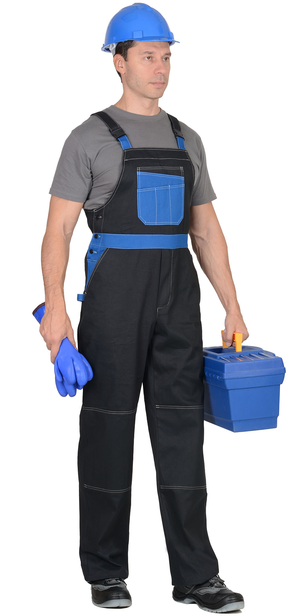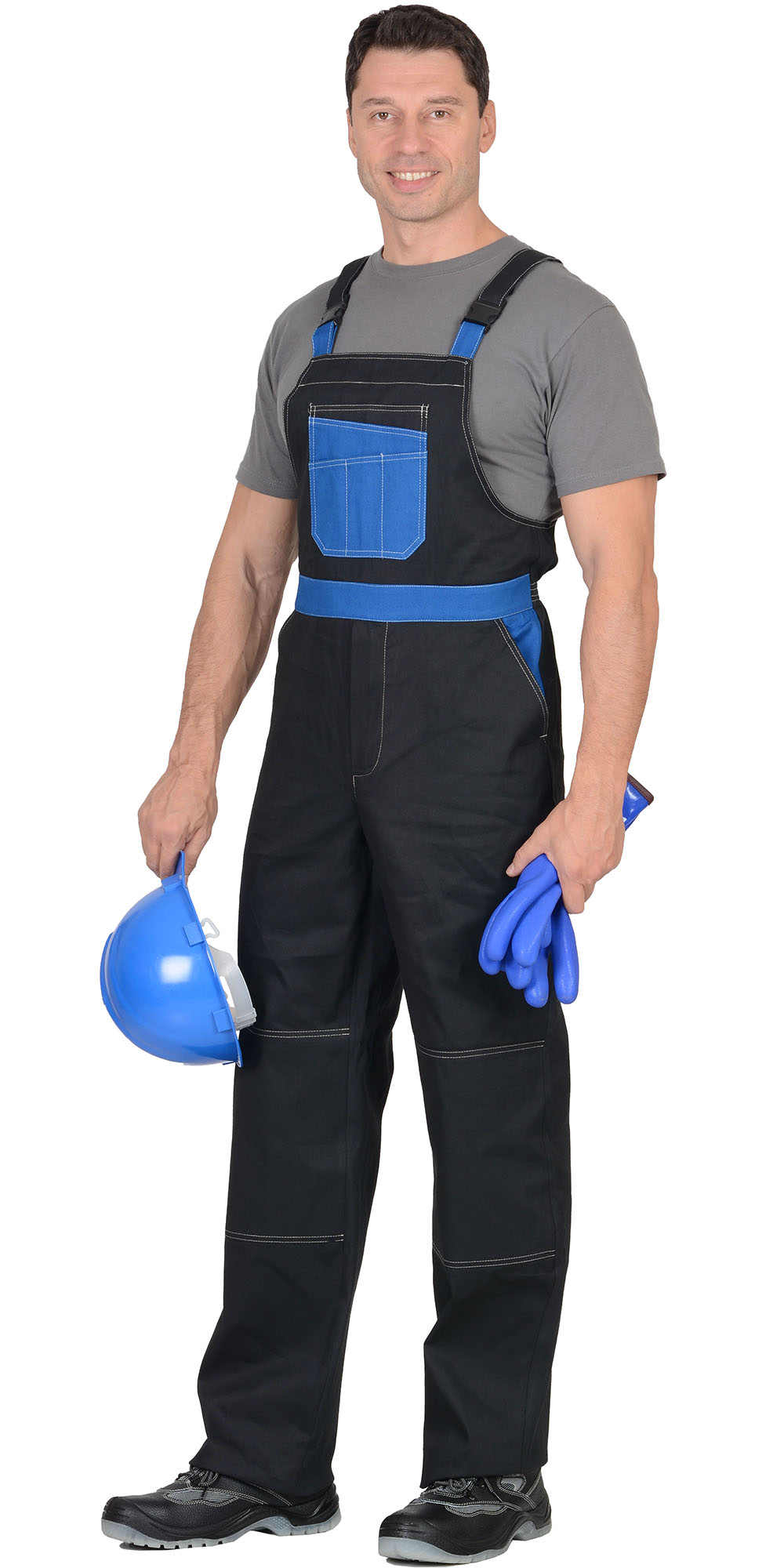 Полукомбинезон "Гранд" чёрный с васильковым (100% узбекская саржа) (ЧЗ) Распродажа ( 96-100/182-188)