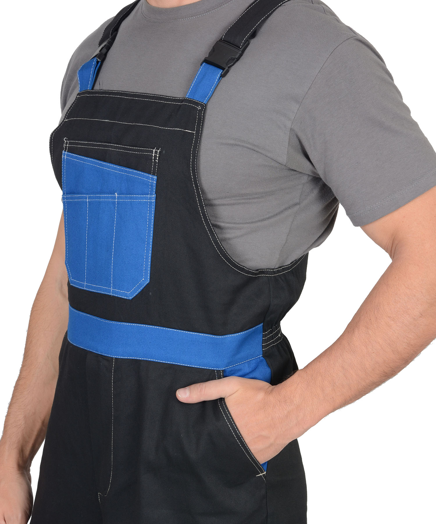 Полукомбинезон "Гранд" чёрный с васильковым (100% узбекская саржа) (ЧЗ) Распродажа ( 88-92/182-188)