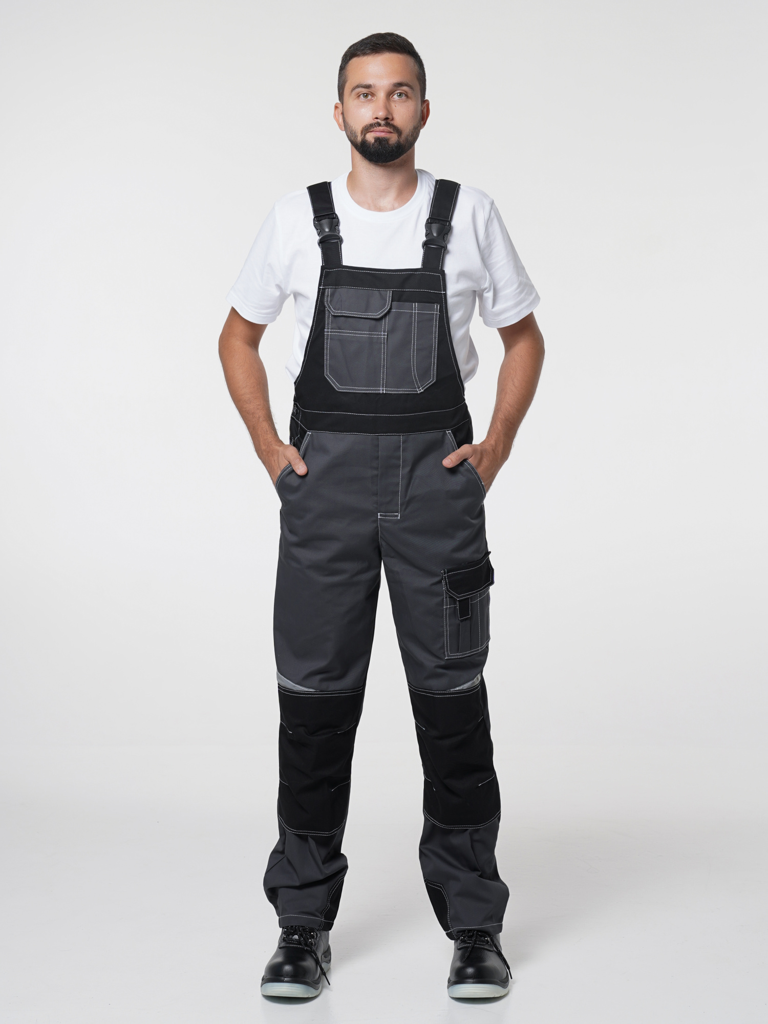 Полукомбинезон рабочий мужской №116 серый с черный, СОП, ткань Протек К
