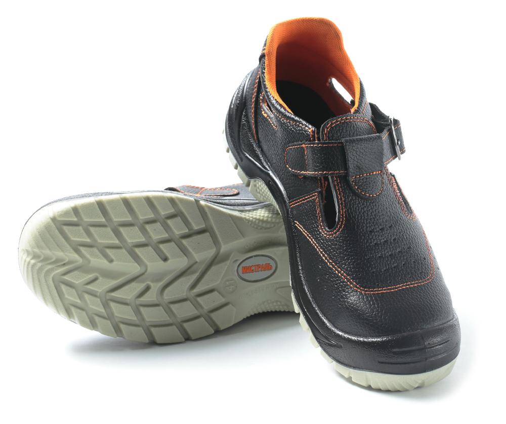 Сандалии «МИСТРАЛЬ-ULTRA» изготовлены методом литья к заготовке верха обуви. В соответствии с комплектацией обуви и замаркированными обозначениями защитных свойств обувь серии «МИСТРАЛЬ-ULTRA» обеспечивает защиту от нефти, нефтепродуктов, механических воздействий, растворов кислот и щелочей концентрации до 20%, и общих производственных загрязнений. Сандалии «МИСТРАЛЬ-ULTRA» с поликарбонатным подноском и антипрокольной металлической  стелькой. Верх обуви «МИСТРАЛЬ-ULTRA» – термоустойчивая водоотталкивающая кожа (юфть) толщиной 1,8–2,0 мм. Подошва – двухслойная ПУ-ТПУ, устойчивая к воздействию нефти, нефтепродуктов, кислот и щелочей концентрации до 20%, повышенных и пониженных температур. Верхний слой из полиуретана обладает амортизирующими свойствами, гасит ударные нагрузки, а также придает обуви легкость, комфортность и повышенные теплозащитные свойства. Ходовой слой изготовлен из термопластичного полиуретана с улучшенным сопротивлением скольжению, стойкостью к деформациям, истиранию. Носочная часть имеет дополнительную защиту в виде подлитого носка, предотвращающего механические повреждения обуви Для защиты от ударов в носочной части стопы в обуви серии «МИСТРАЛЬ-ULTRA» применяется композитный подносок (Мун 200), имеющий конфигурацию, препятствующую надавливанию верхнего края на стопу, и оборудованный прокладкой из полиуретана. Класс защиты S3. Сандалии «МИСТРАЛЬ-ULTRA» изготавливаются с проколозащитными прокладками (стельками) из металла, обеспечивающими защиту от проколов и порезов с сопротивлением сквозному проколу пакета деталей низа обуви не менее 1200 Н. Рисунок протектора подошвы обеспечивает хорошую сцепляемость с обледенелыми и замасленными поверхностями (глубина протектора составляет 5,0 мм). Обладает эффектом самоочищения. Объемная колодка специальной конструкции дает возможность работать целый день, не испытывая дискомфорта и усталости. СВП обеспечивает более безопасное использование обуви в темное время суток. Модель подойдет для работы в нефтегазовой, горнодобывающей, энергетической, химической промышленности, на транспорте и в агропромышленном комплексе.