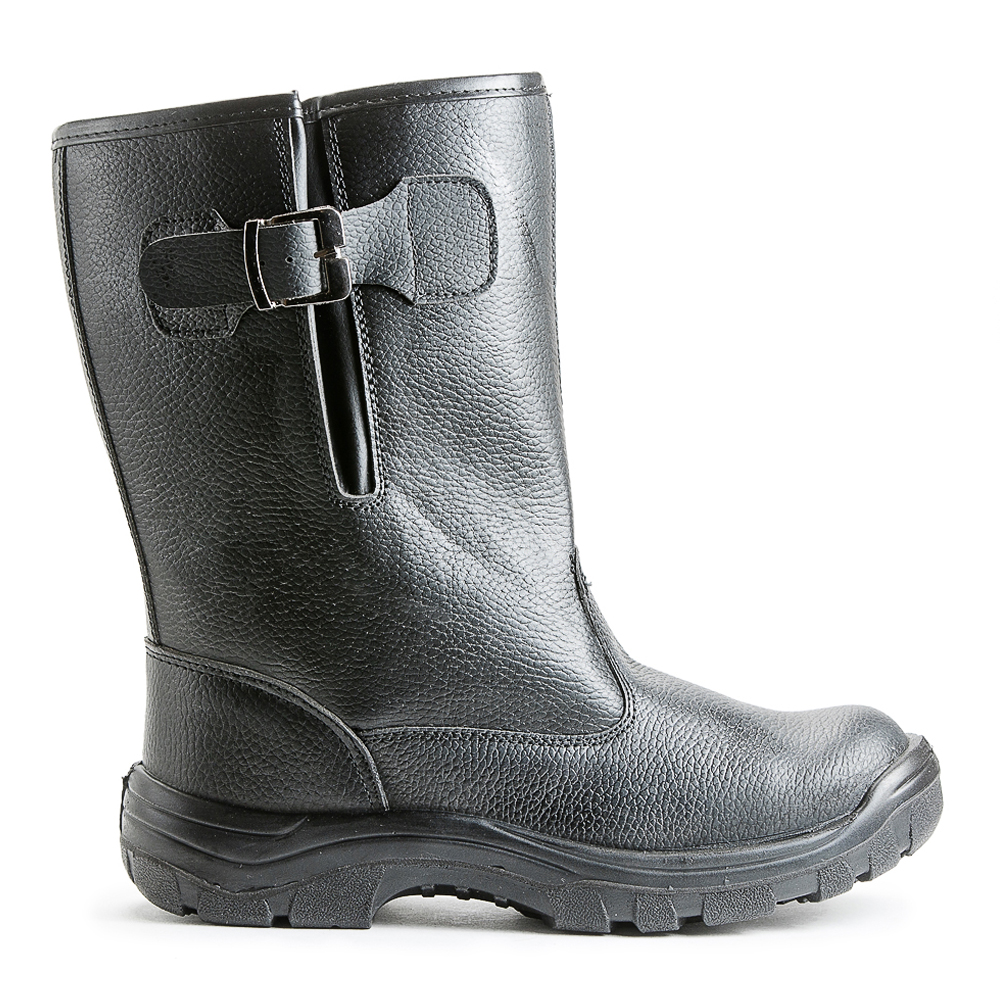 Сапоги изготовлены методом прямого литья подошвы к заготовке верха обуви. Имеется пристроченная прилитая задинка. Верх сапог изготовлен из кирзы, союзка, носок и задинка – из кожи. По верху выполнена окантовка. Подкладка из искусственного меха. Стелька вкладная. С внешней стороны голенища выполнен клапан и регулировка по ширине с использованием притачных ремней и металлической пряжки. Голенище имеет высоту 28 см. В носочной части стопы выполнен термопластический подносок. В передней части имеются фигурные световозвращающие элементы для лучшей видимости работника в условиях недостаточной освещенности. Подошва однослойная, полиуретановая, маслобензостойкая (устойчива к воздействию агрессивной среды: нефть, масла, нефтепродукты, щелочи концентрацией до 20%, кислоты концентрацией до 20%). Есть внутренняя амортизирующая вставка в пяточной части подошвы. Цвет сапог – черный.