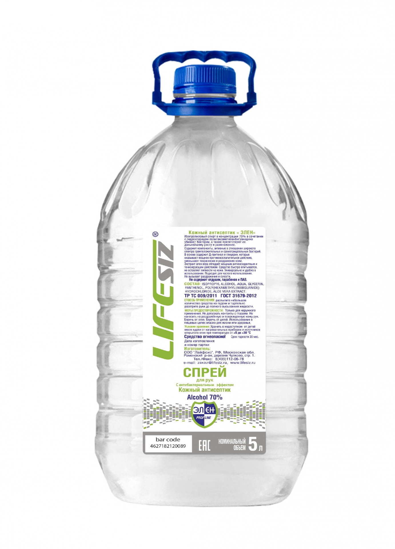 Спрей для рук с антибактериальным эффектом «Элен» (Аlcohol 70%) 5000 мл.