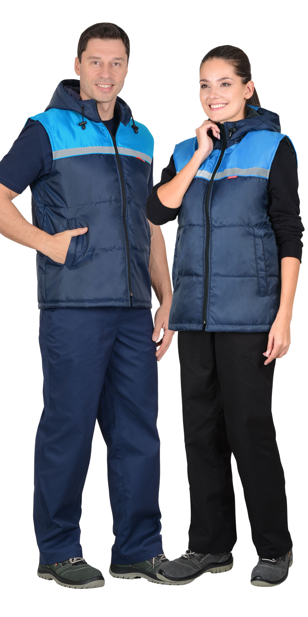 Жилет "Экспресс" с капюшоном и СОП 25мм. синий с голубым (ЧЗ) (120-124)
