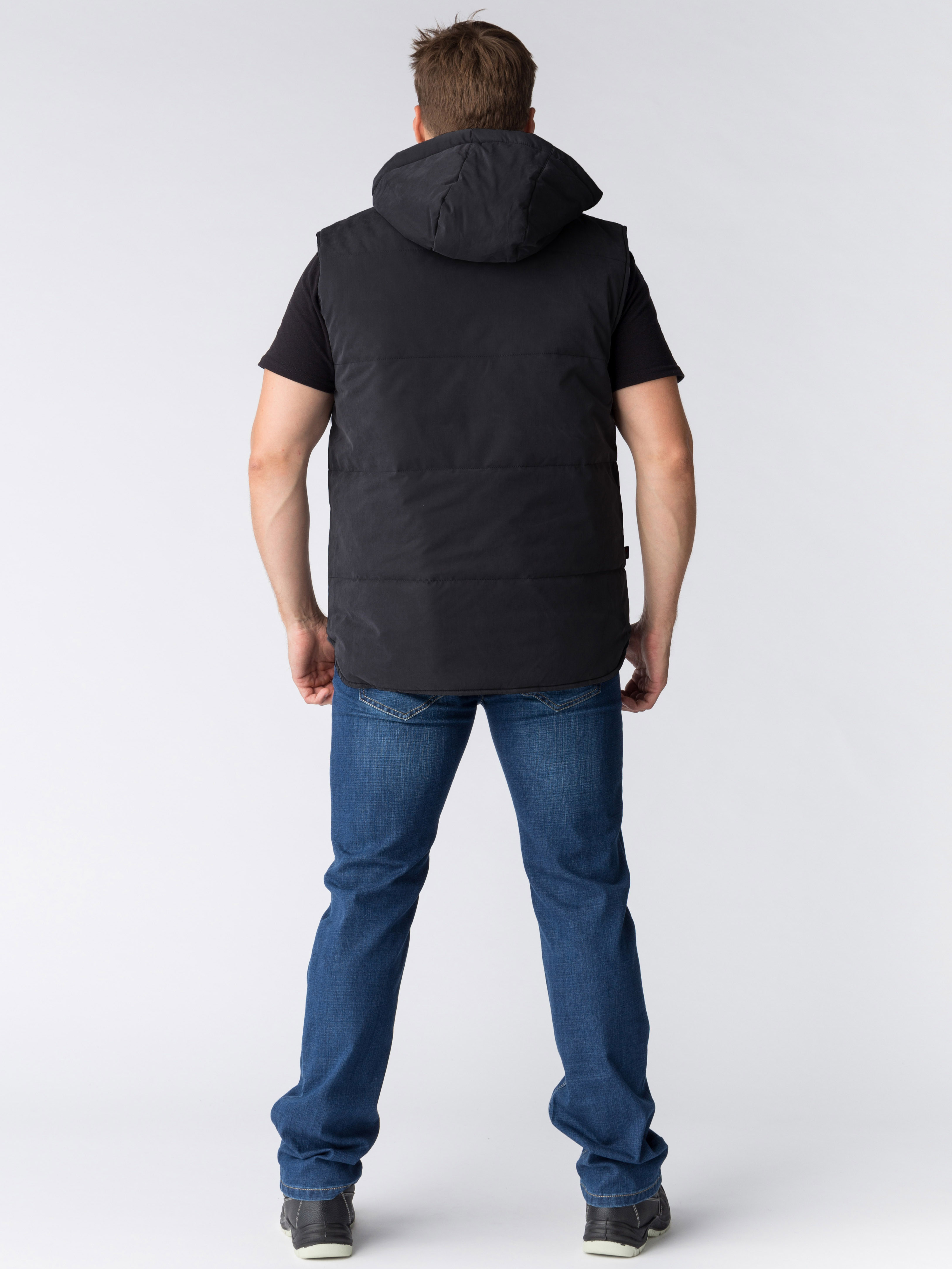 Жилет утепленный с капюшоном Респект (тк.Таслан), черный (ЧЗ) (104-108)