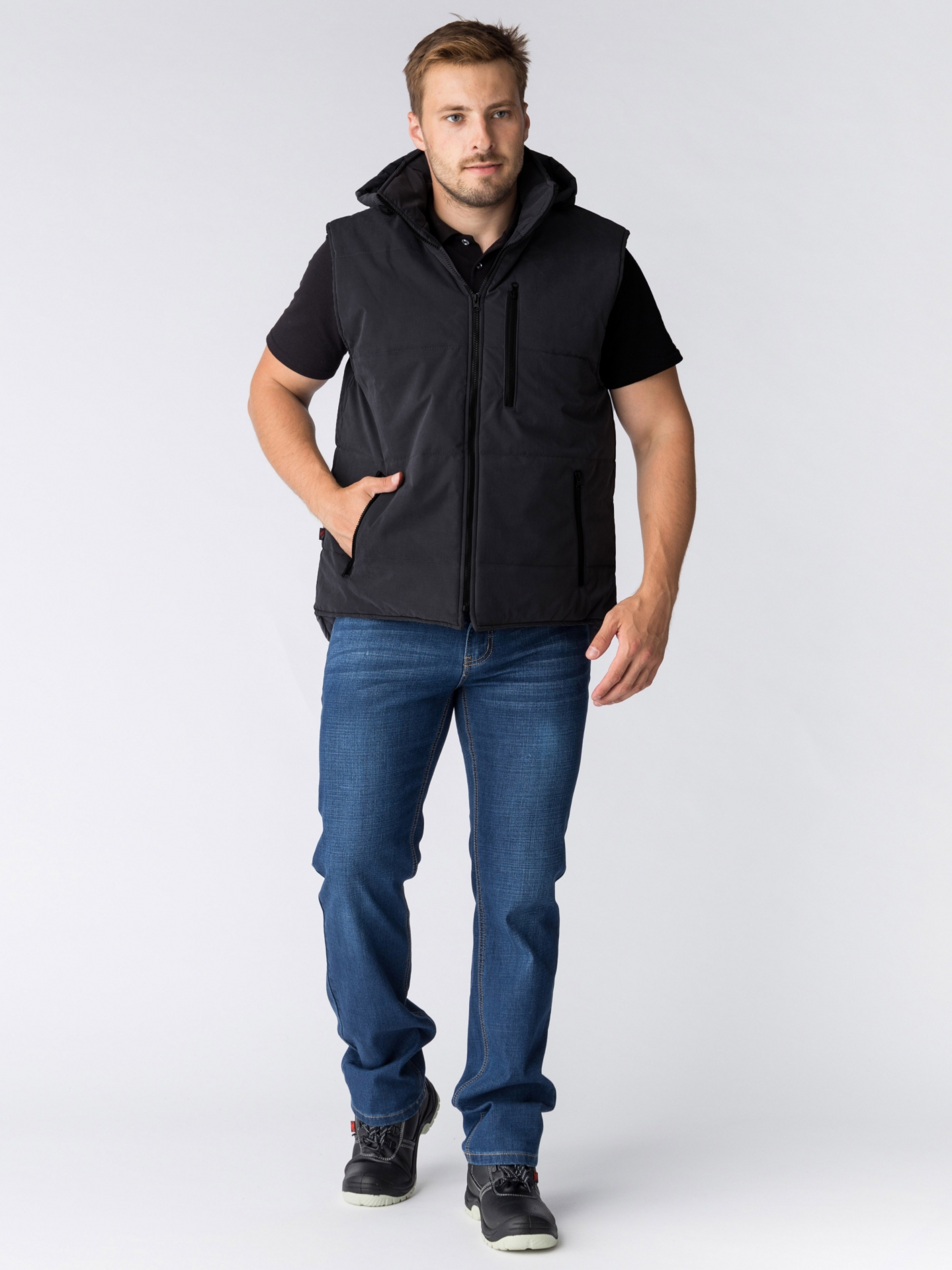 Жилет утепленный с капюшоном Респект (тк.Таслан), черный (ЧЗ)